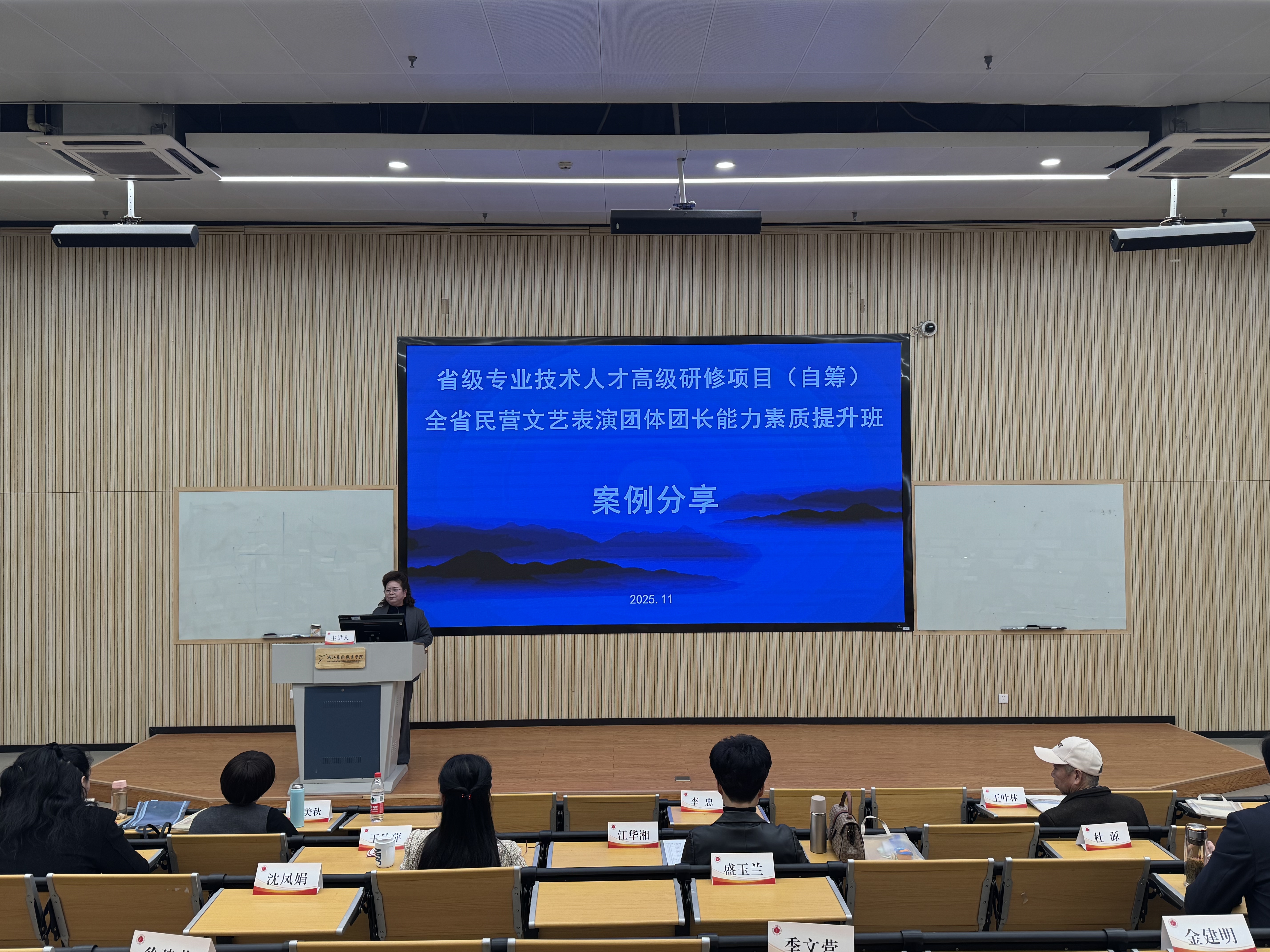 近日,由浙江省文化广电和旅游厅主办,浙江艺术职业学院承办的2025年全省民营文艺表演团体团长能力素质提升培训班在我校举办。全省各县(市、区)规模较大、经营发展较好、创作演出能力较强、具有地方代表性、长期扎根基层、服务社会的民营文艺表演团体负责人齐聚一堂,以专题讲座、现场调研、座谈交流、观摩演出等形式开展学习,共同提升综合能力素质。