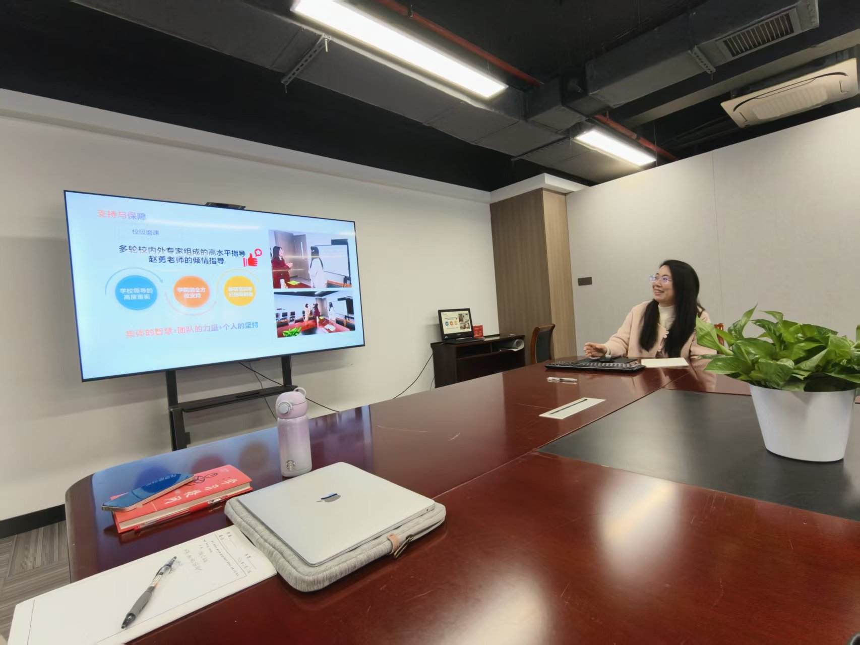 马克思主义学院副院长胡卓群介绍了马院老师今年参加省高职院校教学能力比赛思想政治理论课程组备赛整体情况。参赛选手陈丽丽、王儿两位老师依次播放教学展示视频,分享备赛心得与参赛感悟,她们结合自身备赛经历,从课程设计、课件打磨、团队协作、临场应变等多个维度,生动讲述了备赛过程中的艰辛与收获,深入剖析了比赛中的重难点问题及解决方案,为在场教师提供了宝贵的实践参考。