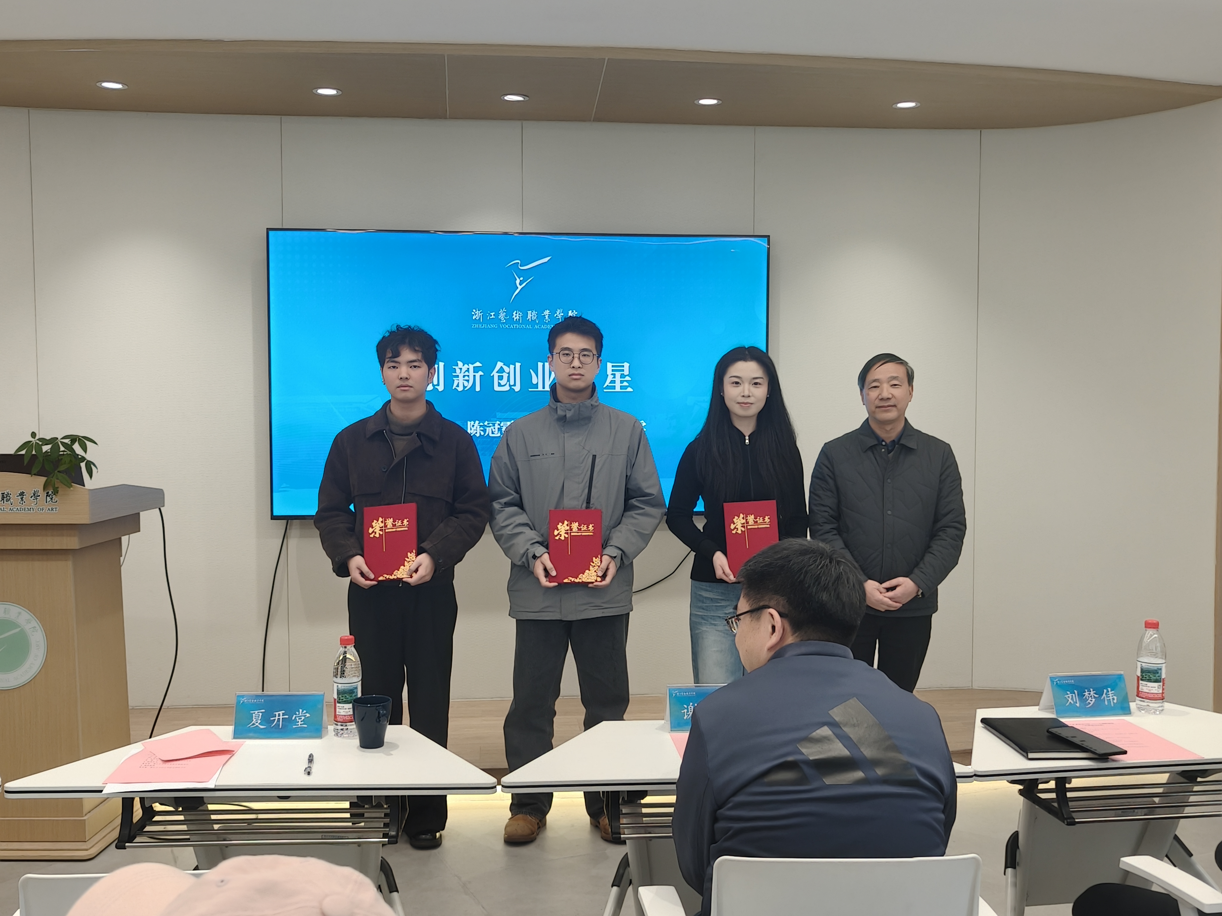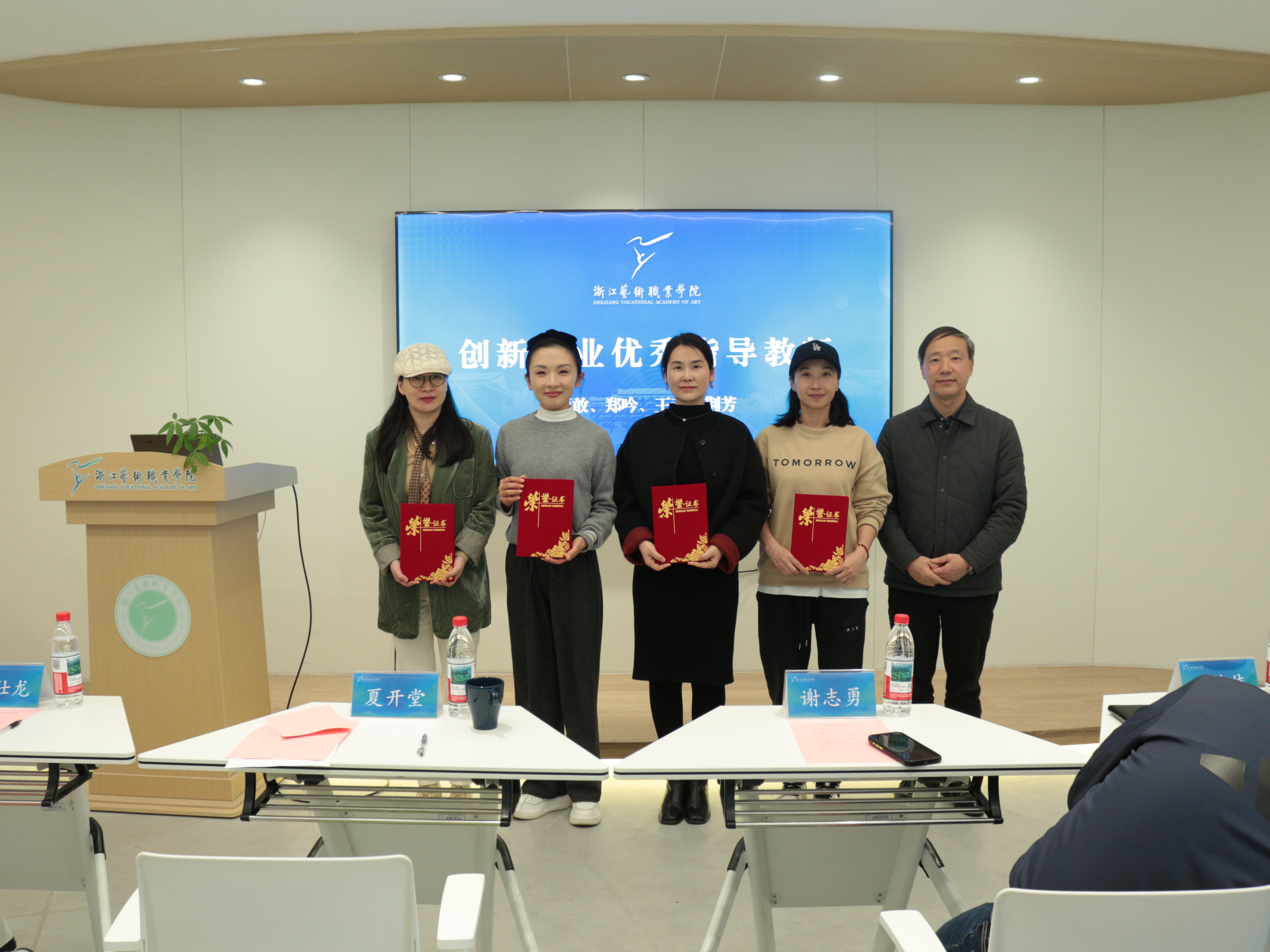 夏开堂宣读了浙江艺术职业学院2025年度创新创业表彰名单,并为年度“创新创业之星”“创新创业优秀指导教师”“创新创业工作优秀组织奖”获奖代表颁奖。