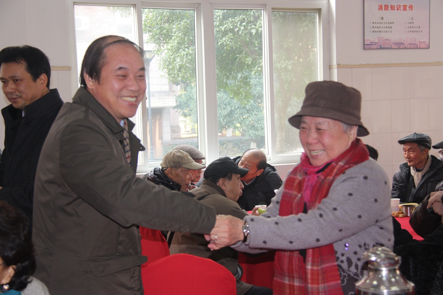 1月17日,新春佳节即将来临之际,浙江艺术职业学院在食堂举行2014年学院离退休老同志迎新春团拜会。院领导林国荣、朱海闵、黄杭娟、章轲、沈恒、夏开堂,学院各系和部分职能部门负责人代表,100多名离退休老同志等,欢聚一堂,共同庆祝马年的即将到来。