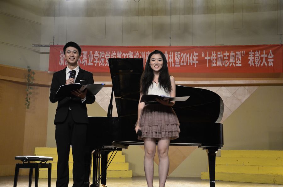 5月21日,浙江艺术职业学院党校第23期培训班结业典礼暨2014年“十佳励志典型”、优秀教工通讯员、优秀学生记者表彰大会在学院音乐厅举行。院党委书记、党校校长林国荣,党委副书记、党校副校长黄杭娟,党委委员、纪委书记夏开堂,相关职能部门负责人,各系党总支副书记和辅导员,党校师生和各系学生代表参会。