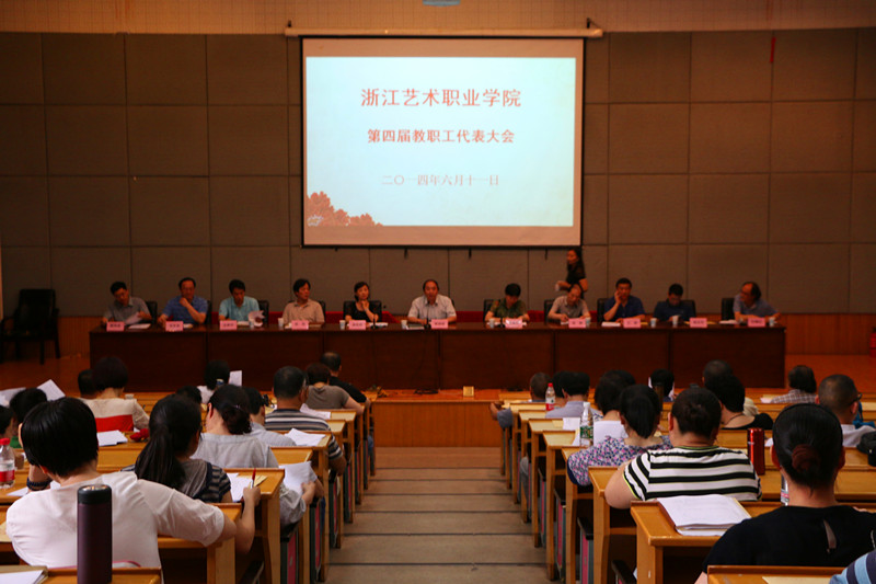 6月11日下午,浙江艺术职业学院第四届三次教职工代表大会在图信中心报告厅隆重举行。院党委书记林国荣,党委副书记、副院长朱海闵,党委副书记黄杭娟,副院长章轲、沈恒等主席团成员出席大会并在主席团就座。69名正式代表和21名列席代表出席会议。大会由朱海闵主持,黄杭娟作提交审议文件的说明。