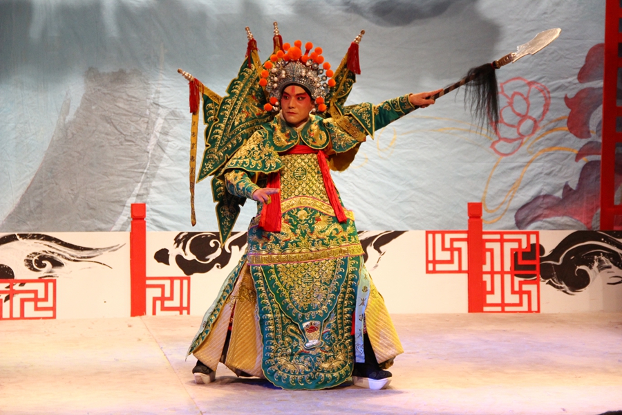 晚会现场气氛热烈,众多戏剧爱好者前来观看。各民营剧团群英荟萃,精彩纷呈。开场越剧《穆桂英挂帅》气势磅礴,彰显巾帼不让须眉的风范;越剧《金玉良缘》贾宝玉的演唱十分到位,神态动作极具传神;最出彩的还数这次大赛的金奖第一名得主京剧《芦林坡》中的扈三娘饰演者齐秀坤,她一对日月神刀虎虎生风,或跳跃,或高空翻,还有蹦子等高难度动作。这位已40多岁的演员学习京剧已有30年了,曾在河北艺术学校学习,由于对戏曲的喜爱,所以坚持走到现在,在这过程当中,受过很多伤,还经常带伤上台表演,一些名家、老师都夸她练功刻苦,学得很快。她在演出前接受采访时表示,这次来参加比赛,也是锻炼的机会。当晚另一亮点则是“反串”表演,一贯是女串男的越剧,这次居然有男穿女,而且演唱高难度的《双玉蝉》,“菱花镜……”声音婉转,跌宕起伏,控制得极好;还有女包公,自己化妆,自己唱,当主持人问道,为什么喜欢演关公、包公这些角色,女包公说道,因为这些角色充满正气。
