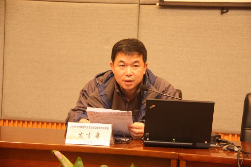 文化部公共文化司副司长周广莲主持开班仪式并讲话,浙江艺术职业学院党委书记林国荣致欢迎词,浙江省文化厅副厅长柳河、中央文化管理干部学院副院长段周武分别讲话。