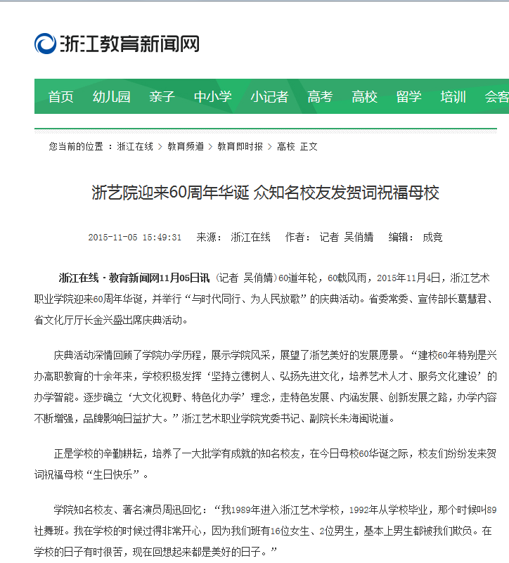 媒体关注浙艺建校60周年校庆(有更新)
