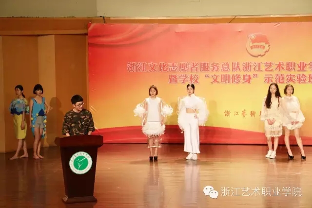 仪式后,对于拟立项的学校“文明修身”示范实验班的14个班级进行了公布,其中戏剧系12演艺一贯班、音乐系15声舞一贯班、舞蹈系14舞蹈一贯班、美术系15服装班、影视技术系14摄影摄像班、文化管理系14文管班分别代表系部做了展示。