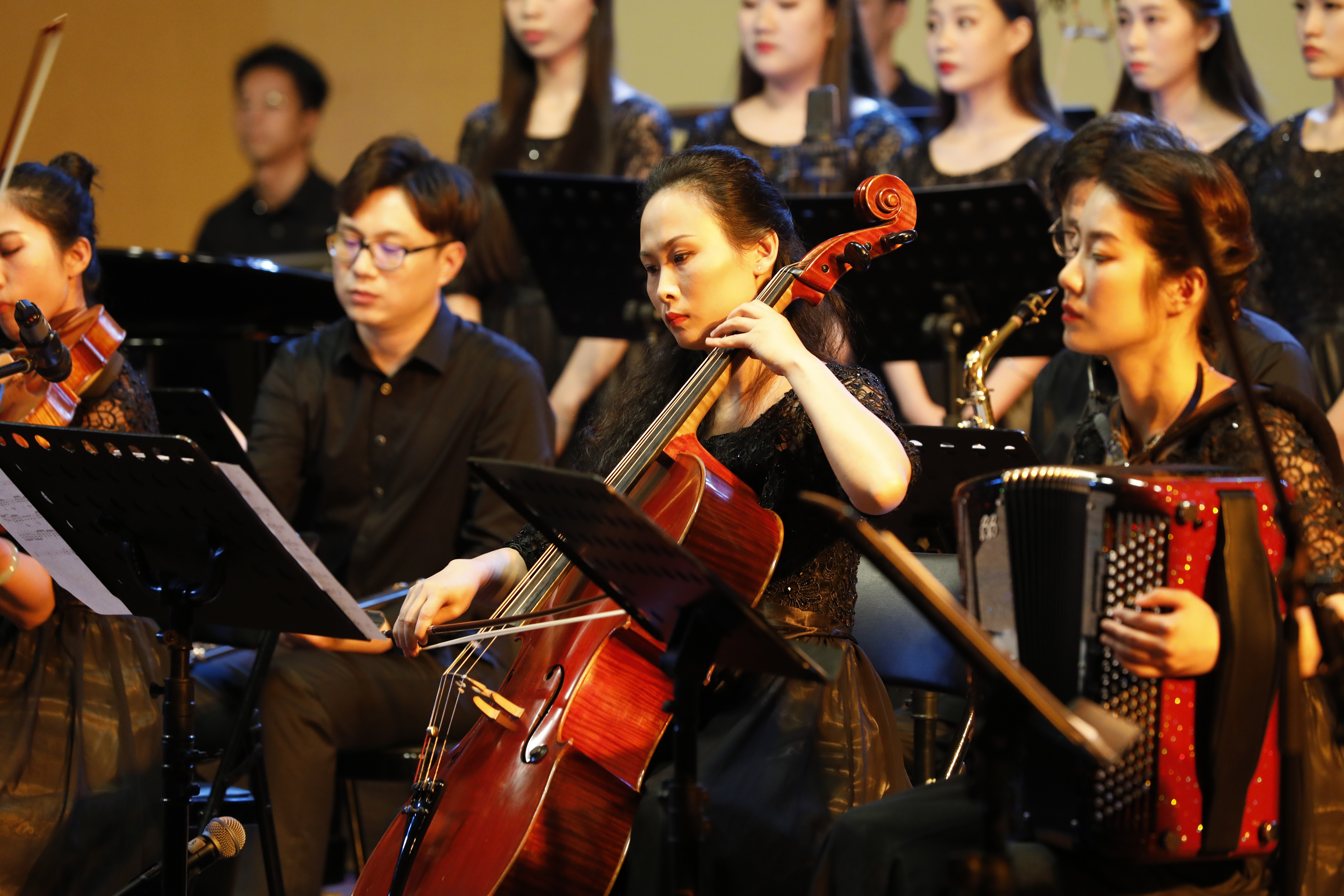 许多人站着听完近90分钟的音乐会。没有赶上昨晚演出的观众还有一次机会。6月9日晚,浙江本土音乐民族管弦乐原创作品音乐会继续在浙艺音乐厅举行。音乐会由浙江艺术职业学院民族管弦乐团演奏。这是一支具有较高演奏水准建制规范的学生民族管弦乐团,由优秀专业教师担任乐团首席及声部指导,着力于“浙江本土音乐原创作品表演、研究与推广”。音乐会第一首民族管弦乐《治水令》由作曲家朱晓谷创作,由“灾”“难”“治”“凯”四部分组成,围绕大禹治水主线一气呵成,表达了五水可治、家园可兴的精神;作曲家王天明的民族室内乐《八婺来风》引用了浙江本土音乐中璀璨的婺剧音乐元素,叙述浙江八婺大地的人文情怀;作曲家周煜国的扬琴协奏曲《咏竹》歌咏的是江南的竹子,颂扬的是中华民族的风骨气节;压轴曲《鉴湖侠女——秋瑾》是何占豪的作品,用音乐讲述秋瑾的故事,“不惜千金买宝刀,貂裘换酒也堪豪。一腔热血勤珍重,洒去犹能化碧涛”,侠女的诗正是巾帼英雄的最好写照。