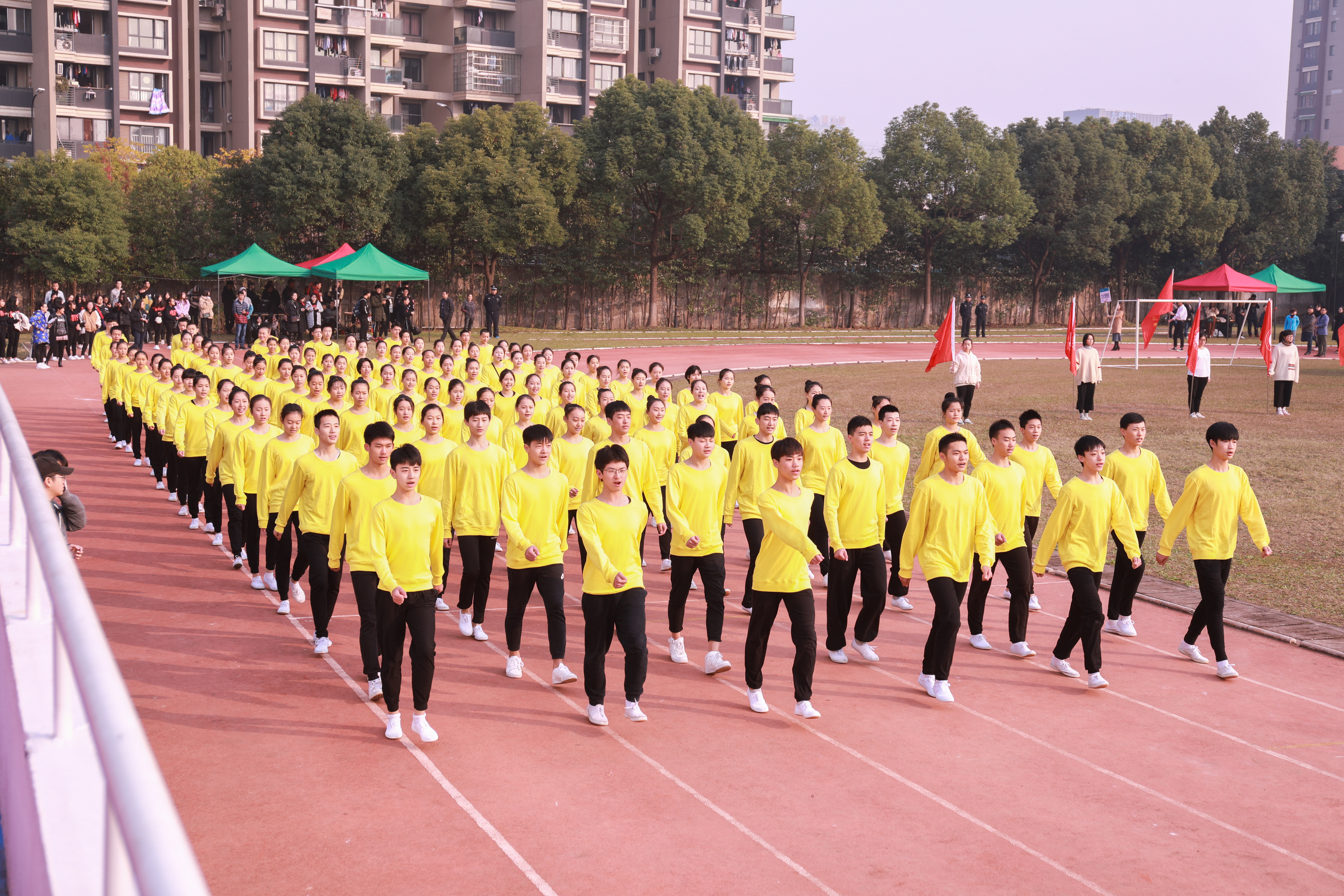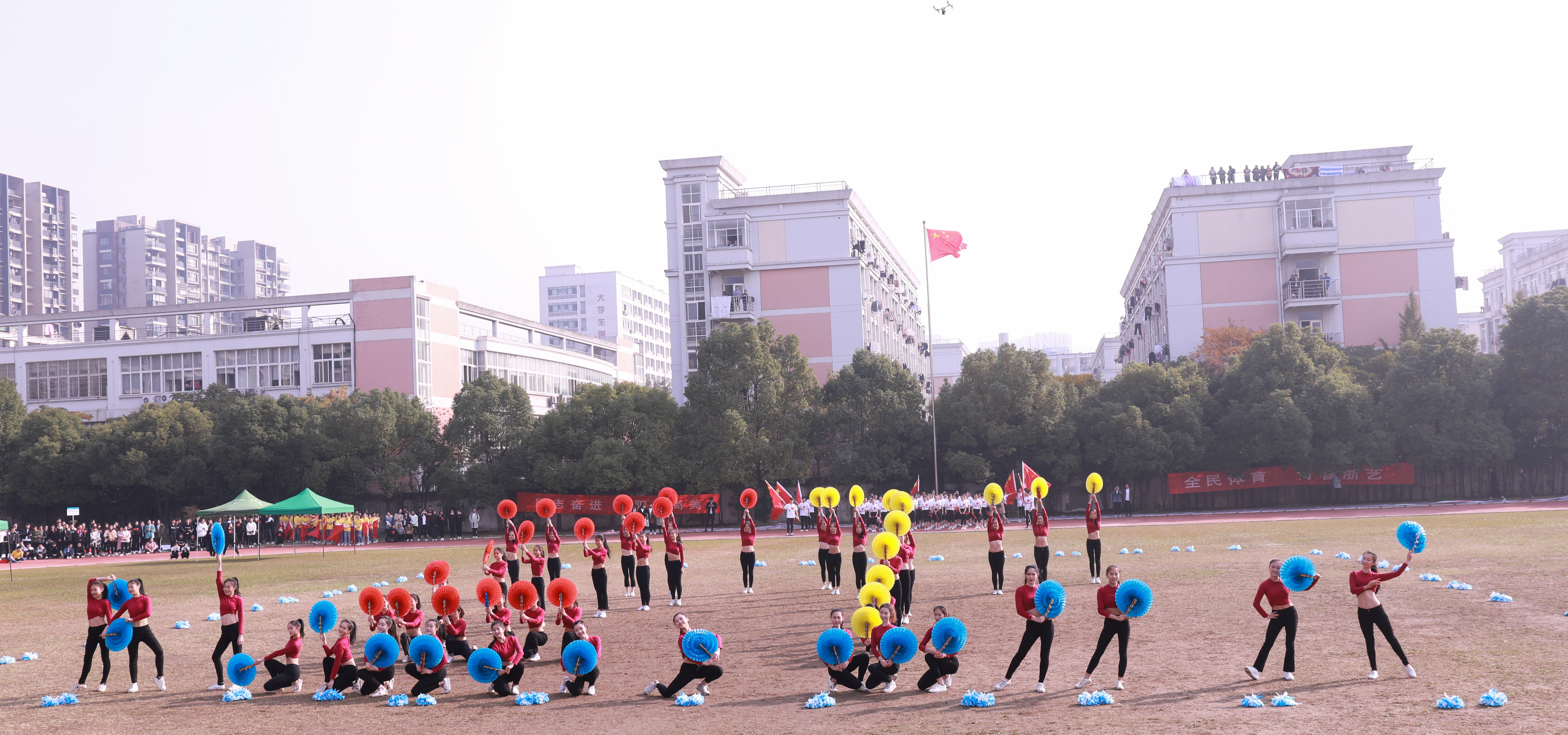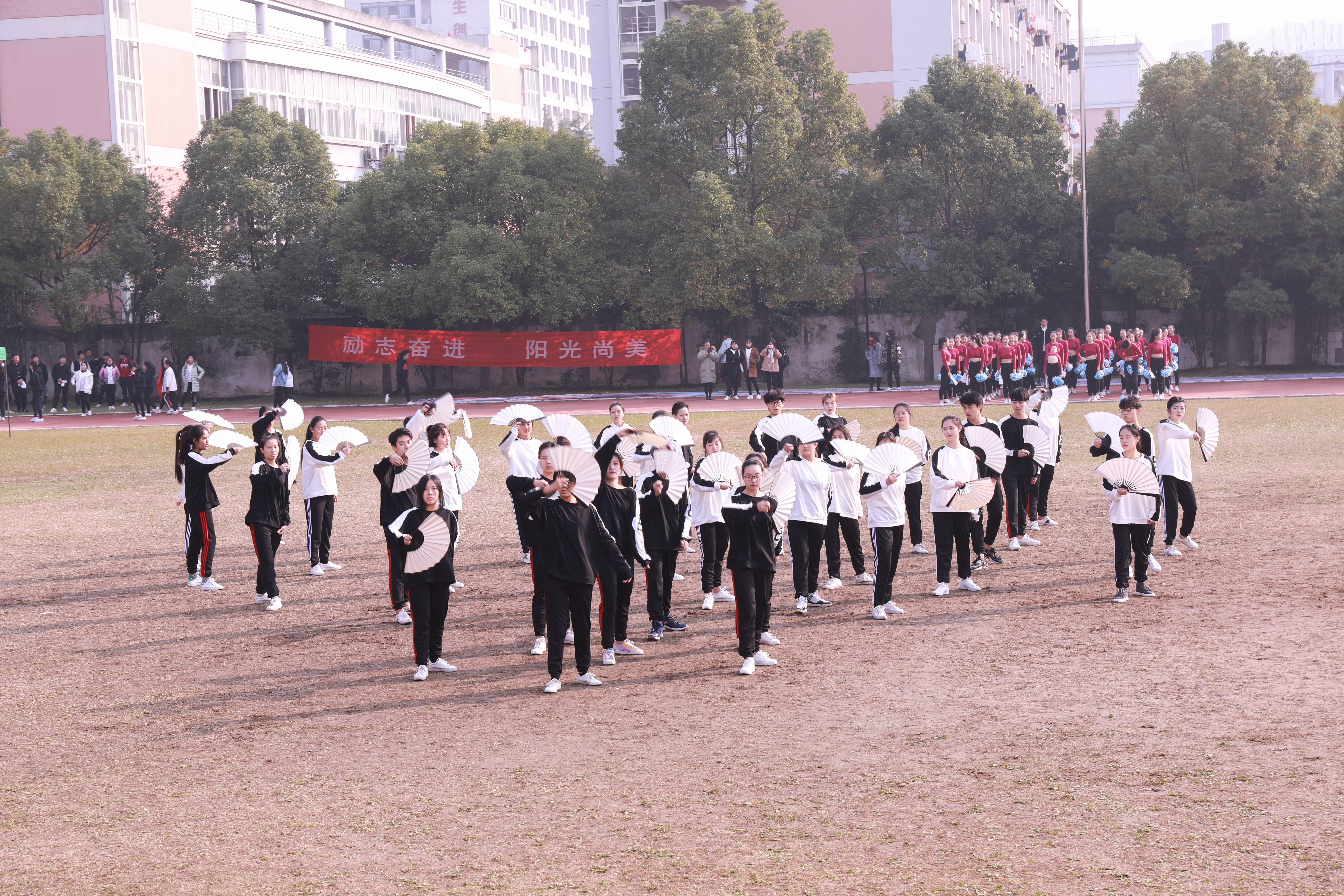 开幕式上进行了广播操和团体操的比赛。广播操比赛中,同学们用整齐规范,有力到位的动作展现了浙艺学子积极进取的精神风貌。团体操的比赛堪称精彩绝伦,各系学子精心准备,结合专业发挥了各自的特长,有舞蹈,有RAP,展现了艺术与体育的糅合之美和综合类艺术院校学子的多才多艺。同学们的激情,温暖了这个冬日。相信即使在若干年后,浙艺田径场上的每一幕都是值得回忆的青春。