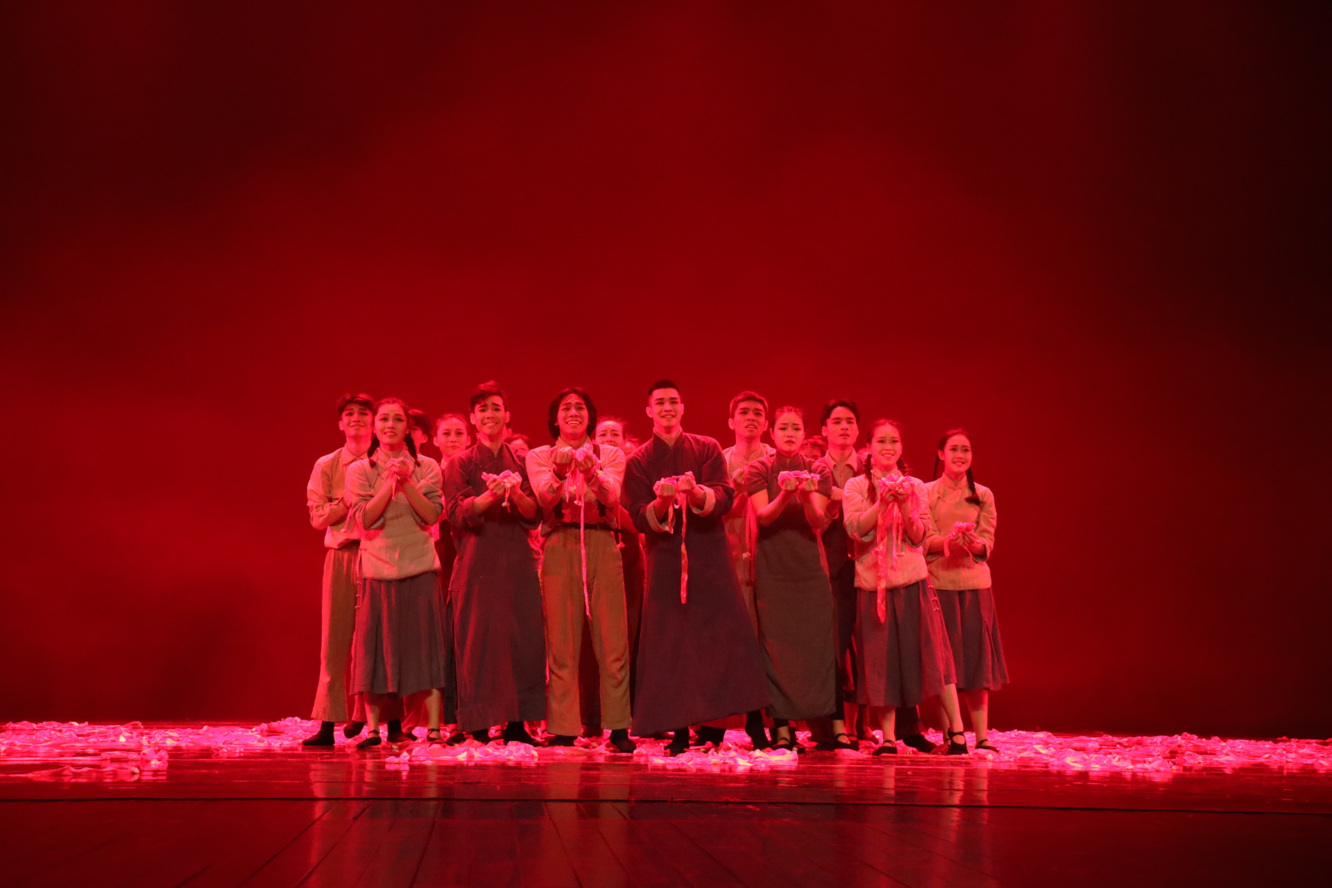 群舞《定海血壁》(编导:曹晨霄)、群舞《花鼓声响花开处》(编导:包峥剡)二部风格迥异的作品荣获舞蹈类银奖。“风萧萧兮易水寒,壮士一去兮不复返”,《定海血壁》以第一次鸦片战争中的定海保卫战为历史背景,表达了壮士们誓死保卫国家土地宁死不屈的精神,舞蹈系的男生们用一颗热血沸腾的心出色演绎了这样一部令人振奋的群舞。在此之前,该舞蹈曾荣获2017首届“浙江风格 江南舞韵”作品展演“十佳作品(综合最高奖)”奖,也在2017浙江省大学生艺术节上有过精彩展示,是今年浙艺力推的优秀舞蹈作品之一。与《定海血壁》所展现出来的铮铮侠骨、男儿本色风格截然不同的是另一部获得银奖的作品——女子群舞《花鼓声响花开处》。花鼓声里的小江南,小女儿情的舞蹈风,透过江南烟雨的水乡柔情灵动地流淌出来,赢得了评委的认可和点赞。该舞蹈作为在2017首届“浙江风格 江南舞韵”作品展演中收获“作品表演奖”、“作品编排奖”两枚单项奖的特色之作,曾登上浙江省人民大会堂的舞台献演于“浙静交好,山高水长——庆祝浙江•静冈结好35周年纪念活动”文艺晚会,向省委领导和日本友人带去浙艺的祝福。