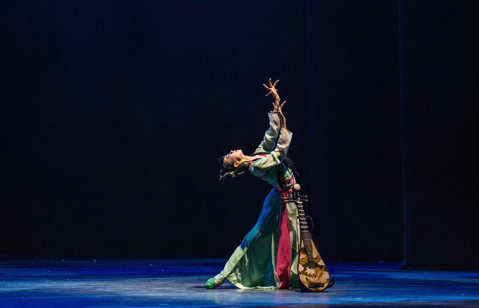 舞蹈系副教授包峥剡在本届音舞节上的第二部获奖作品《小莲初上琵琶弦》是一支女子独舞,表演者是刚在今年全国职业院校技能大赛中国舞表演技能比赛中获得中职组一等奖的娄瑜桐。这次在与来自全省各大院团的专业演员展开比拼的16岁女生娄瑜桐凭借过硬的基本功和对作品内涵的准确把握,终收获一枚难能可贵的铜奖。包峥剡说,一直到临上场前还在不断修缮动作细节,力求展现最完美的一面给观众和评委。《小莲初上琵琶弦》也是近年来常被搬上舞台表演的优秀之作,2016年舞蹈系学生许天慧(现就读于北京舞蹈学院)曾凭借这支舞蹈获得了B组一等奖,不久前这部作品又获得了2017首届“浙江风格 江南舞韵”作品展演“作品创意奖”。“小莲初上琵琶弦,弹破碧云天。分明绣阁幽恨,都向曲中传……”出自苏轼的作品,描写了琵琶女小莲琴声的清越、婉转和容貌的清纯,将音乐之美与容貌之美融为一体。舞者的一招一式、一颦一笑,都体现出了江南姑娘犹抱琵琶半遮面的韵味。