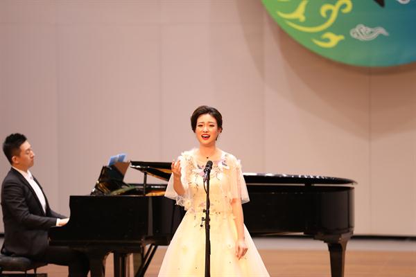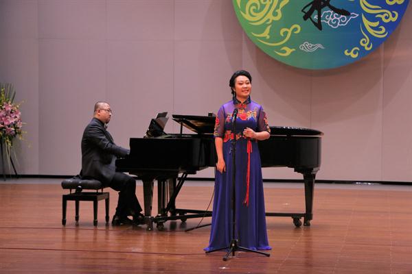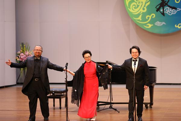 胡素银和现场声乐学生合唱的《我的祖国》为音乐会开场。越剧《梁山伯与祝英台》选段《十八相送》,由87级越剧班陈爱菊、周艳演绎,就像婉约清丽的江南之水,曲调柔美深情,是胡素银从教的第一份纪念。浙艺原创音乐剧《五姑娘》选段《爱到永远》,由96级音舞班钱思舒和音乐系党总支专职副书记谢志勇演绎,“想过多少年,盼过多少年”熟悉的唱段令人陶醉;乐清民歌《对鸟》曲调欢快爽朗,节奏自由舒展,由00级音乐表演班冯斯凡演绎;苏东坡的《饮湖上初晴后雨》由93级群文班畲族学生雷莹完成,经典诗词吟唱起来别有一番韵味;纯朴生动的陕北民歌《兰花花》,委婉凄怆的河北民歌《小白菜》,以及《哈达似的白云》分别由04级声乐五年一贯班胡韵、浙江音乐学院贾舒韵和92级社音班袁春演唱,不同风格的民歌展现了不一样的情感。96级音乐班刘伟带来的内蒙民歌《莫尼山》引发了现场小高潮,歌声正如歌词所唱“高入云端”,诉说着大自然的诗篇。