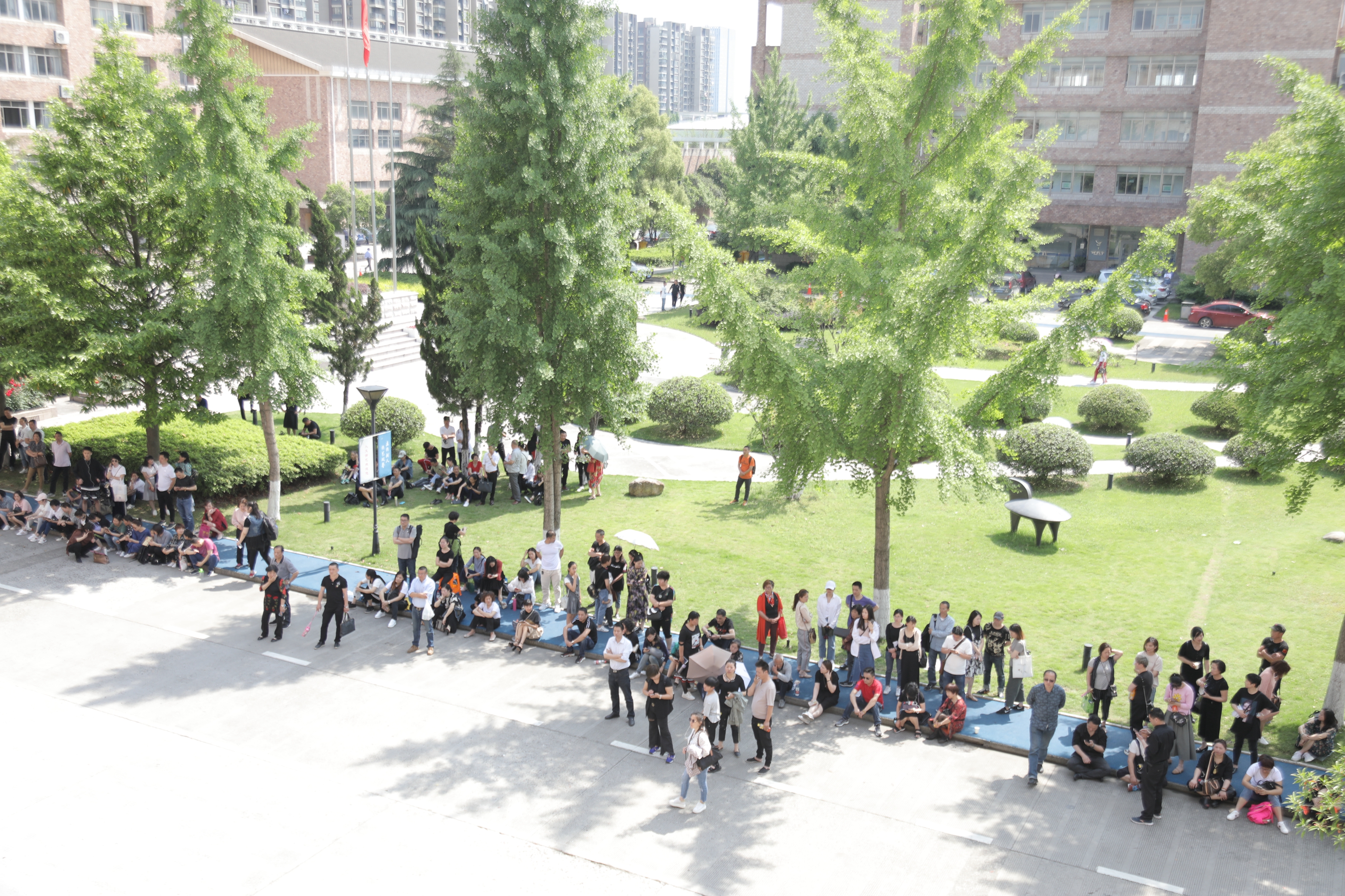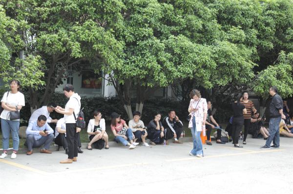 因为本次招考对象年纪较小,很多外地过来的考生几乎是全家出动。不少家长是在出发地组团来到浙艺,一位温州的家长表示,“我们也是第一次陪考,对于艺术考试不太熟悉,所以在考前就联系了一批同样陪考的家长一起来,互相有个照应。”也有家长在考场门口焦虑得停不下脚步,“心情真的很紧张,不知道自己能帮上什么忙”,家长们对开启孩子艺术生涯的新起点充满期待。