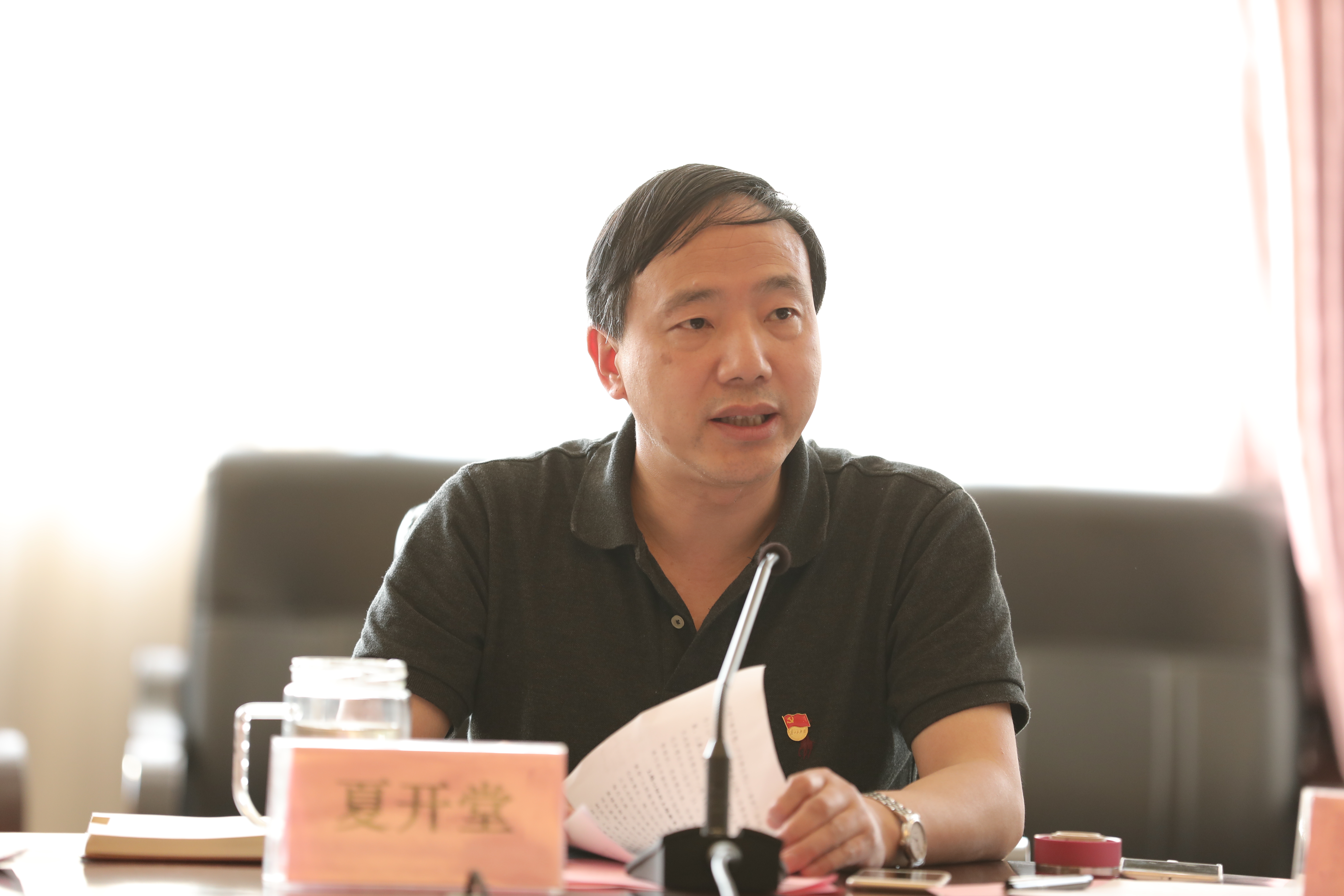 6月13日下午,省文化厅直属机关党委委员、厅人事处处长戴言,调研员陆涛一行来校督查2018年上半年党建和党风廉政建设情况。浙江艺术职业学院党委书记朱海闵,党委副书记夏开堂,党委委员、纪委书记徐芳,党委委员、组织部(统战部)部长王涛,党委委员、宣传部长马向东及党委各职能部门、各党总支负责人参加座谈。
