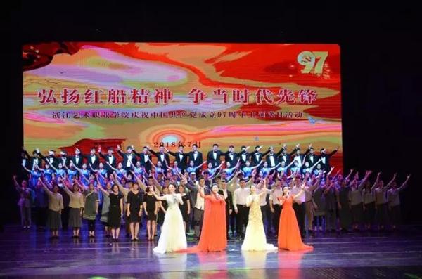 “弘扬红船精神 争当时代先锋”浙江艺术职业学院庆祝中国共产党成立97周年主题党日活动在大合唱《中国进入新时代》中圆满结束。