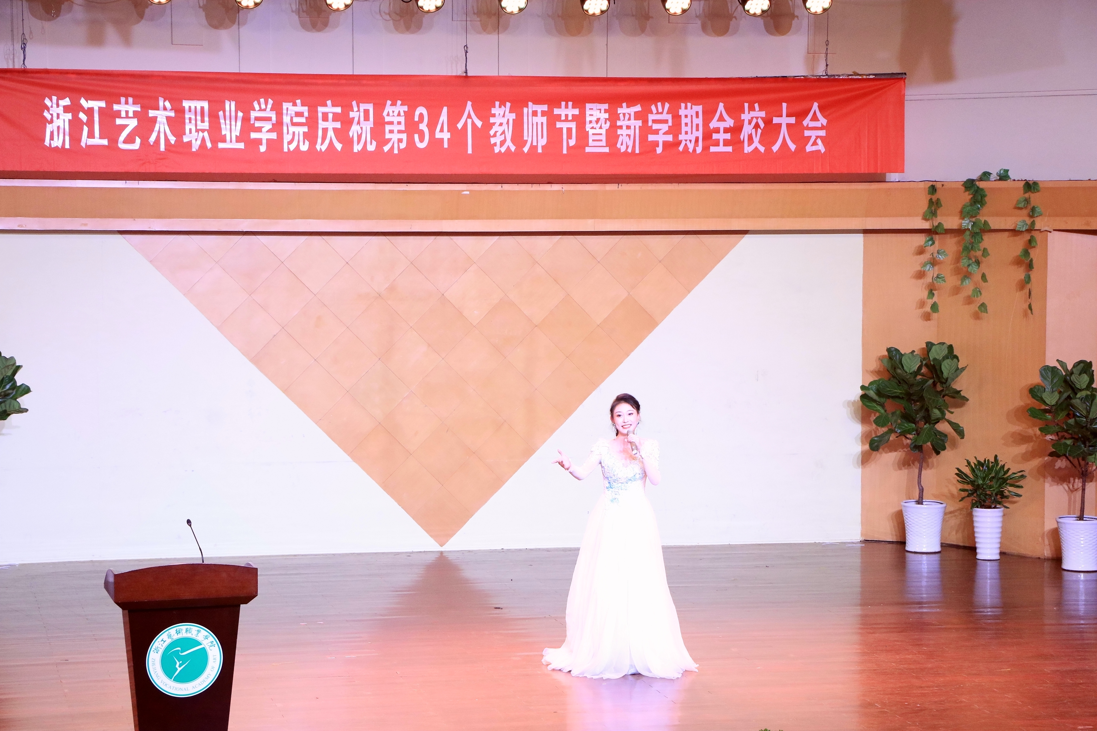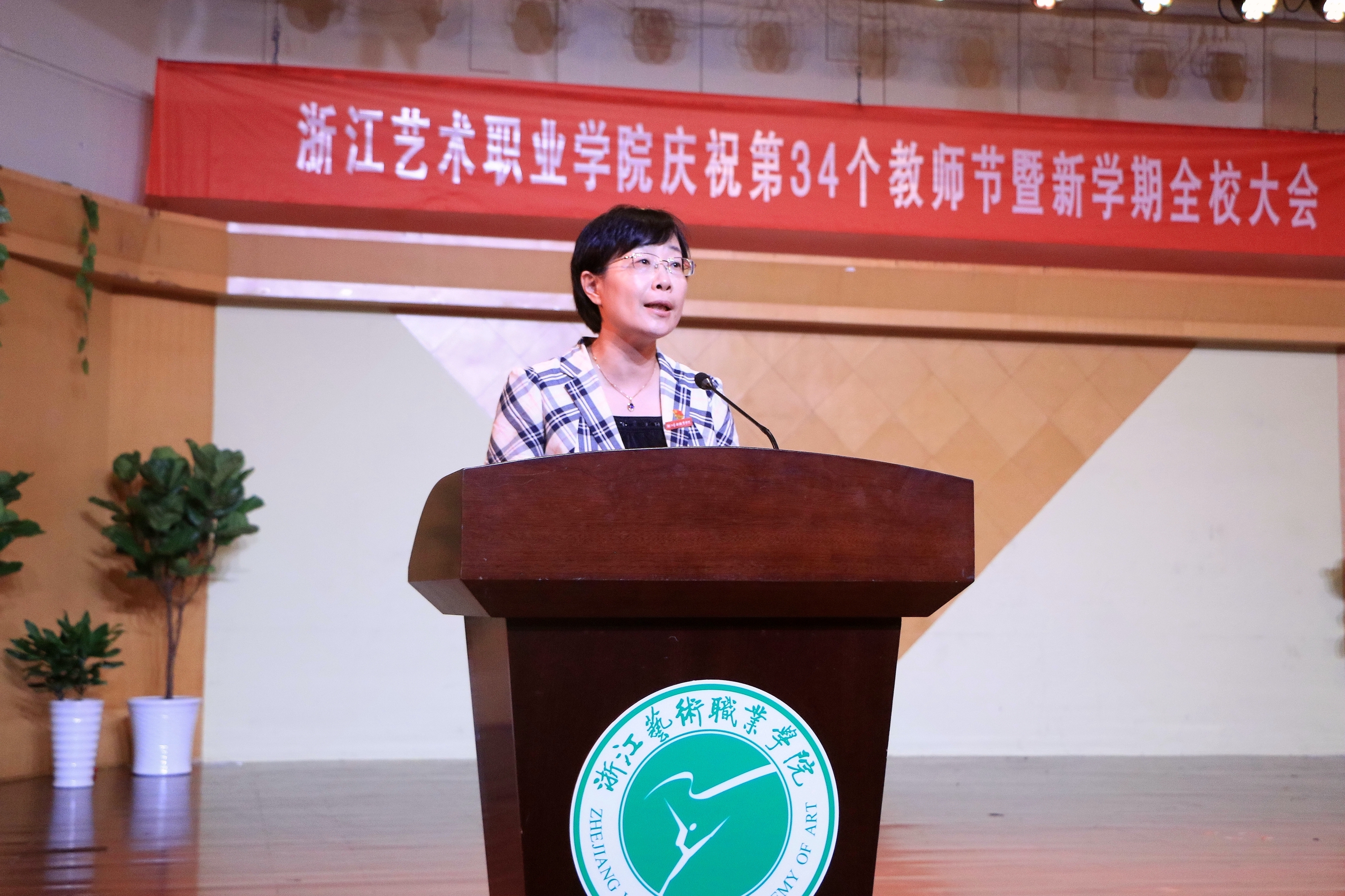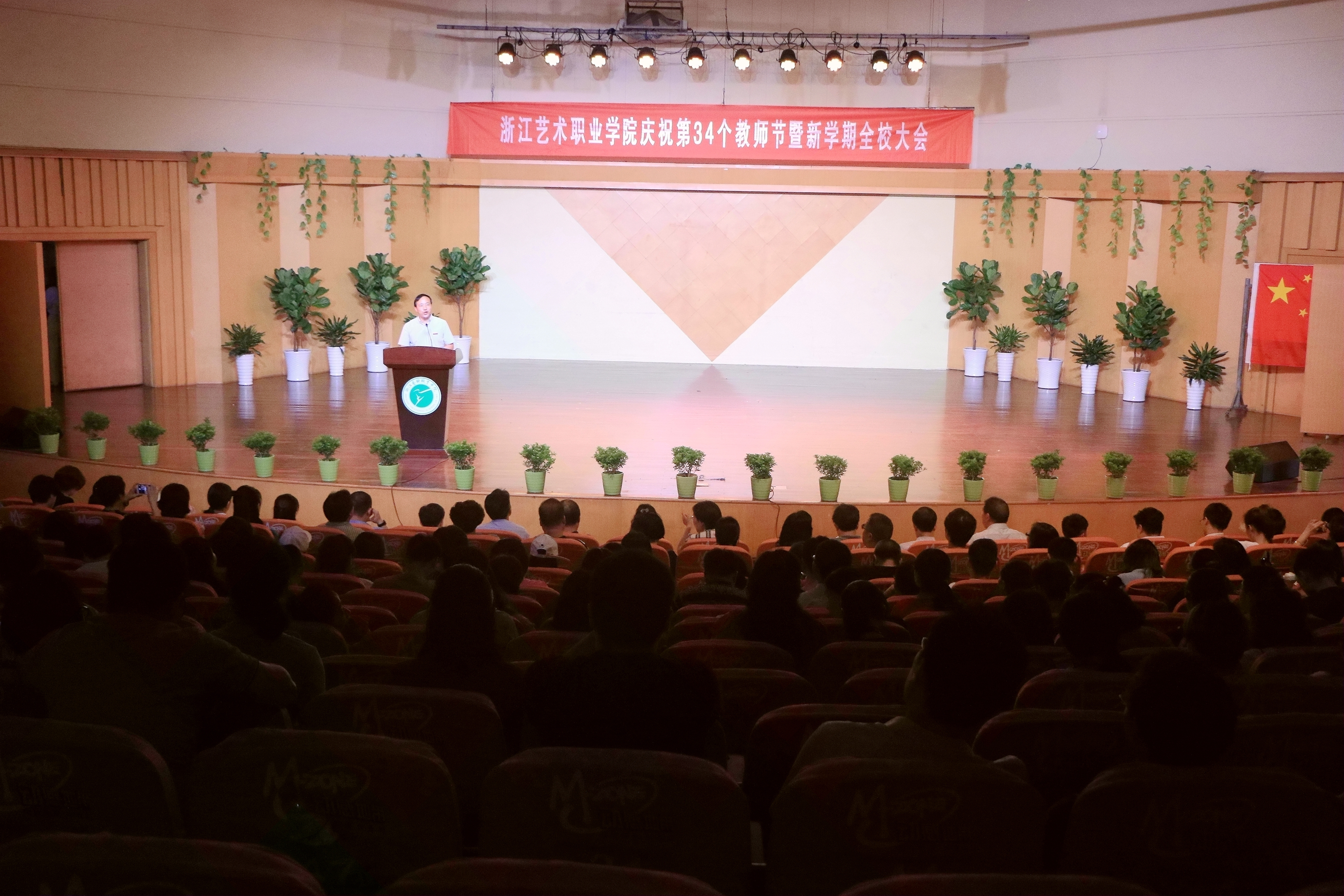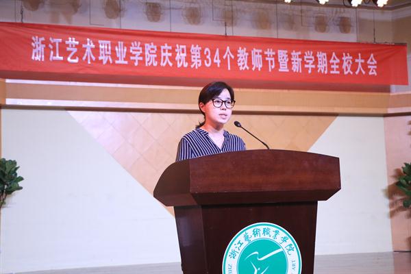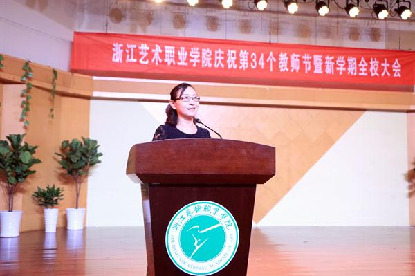 9月19日下午,浙江艺术职业学院庆祝第34个教师节大会暨新学期全校大会在音乐厅举行。校领导朱海闵、黄杭娟、夏开堂、章轲、沈恒、徐芳、沈军甫、王涛、马向东出席,全院教职工参加大会。党委副书记夏开堂主持大会,他代表校党委领导班子向过去一年来在各个岗位上辛勤工作、默默付出,为学校发展和学生成长成才做出不懈努力的全体教职工送上亲切的问候和诚挚的感谢。