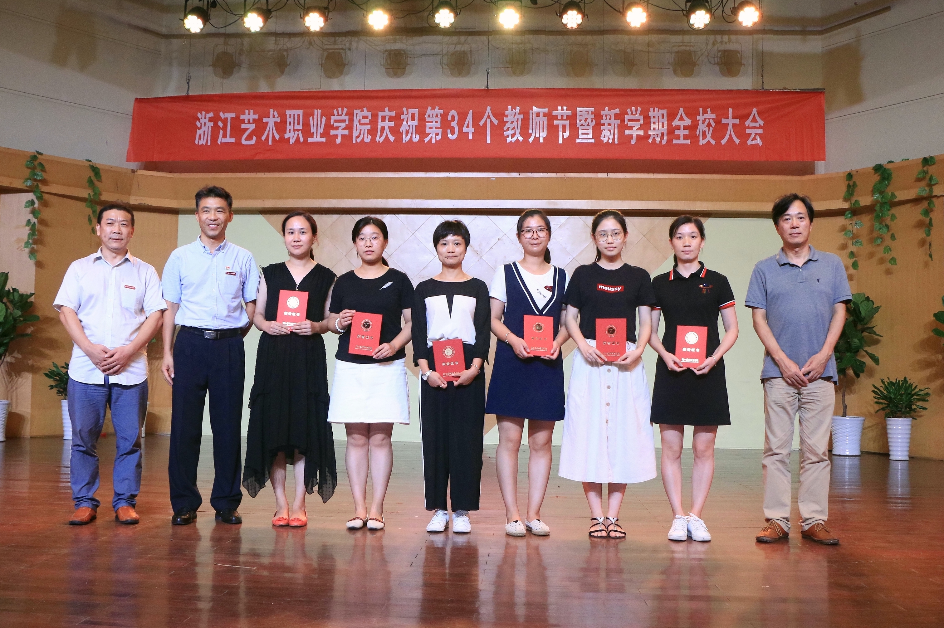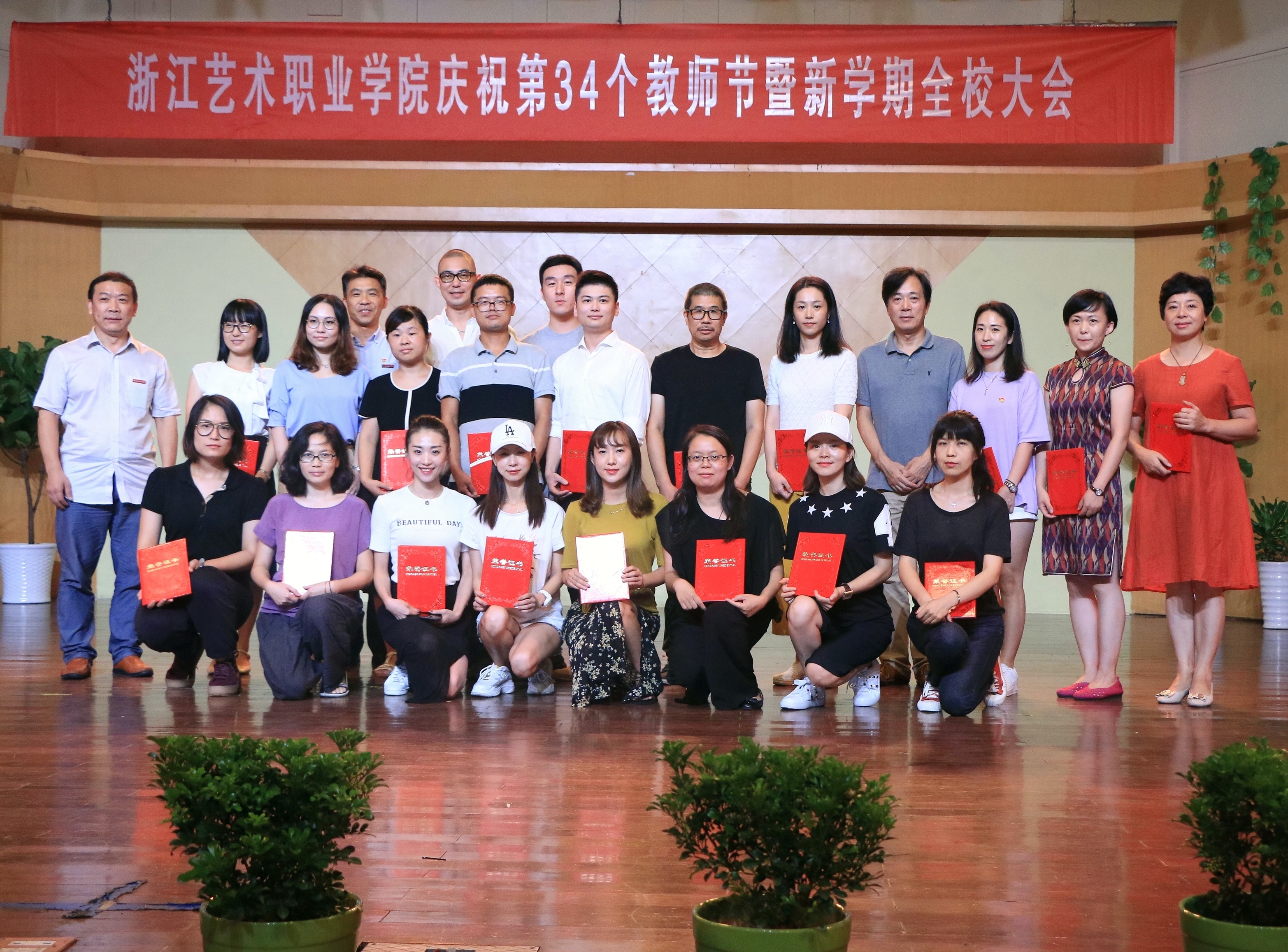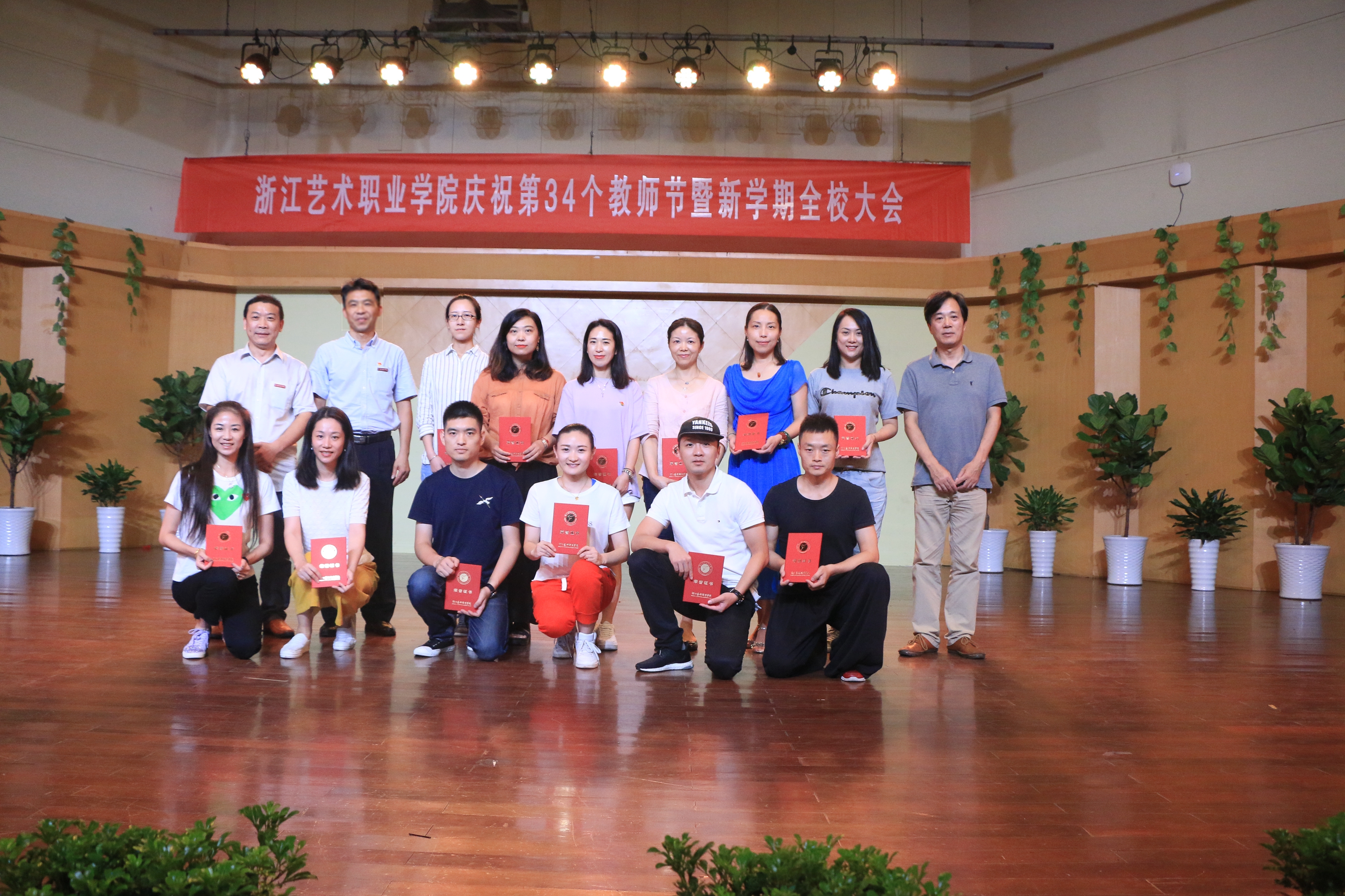 9月19日下午,浙江艺术职业学院庆祝第34个教师节大会暨新学期全校大会在音乐厅举行。校领导朱海闵、黄杭娟、夏开堂、章轲、沈恒、徐芳、沈军甫、王涛、马向东出席,全院教职工参加大会。党委副书记夏开堂主持大会,他代表校党委领导班子向过去一年来在各个岗位上辛勤工作、默默付出,为学校发展和学生成长成才做出不懈努力的全体教职工送上亲切的问候和诚挚的感谢。