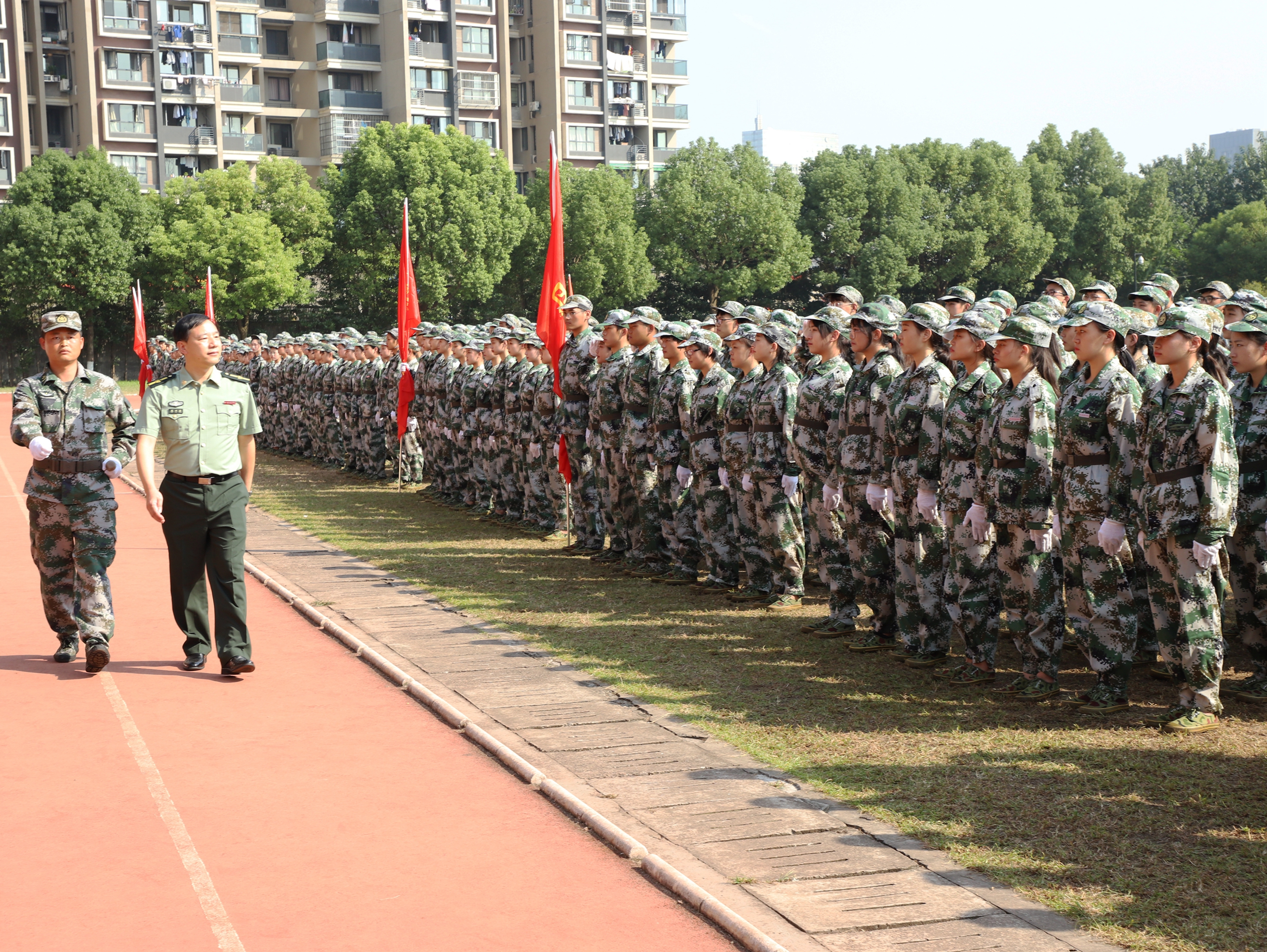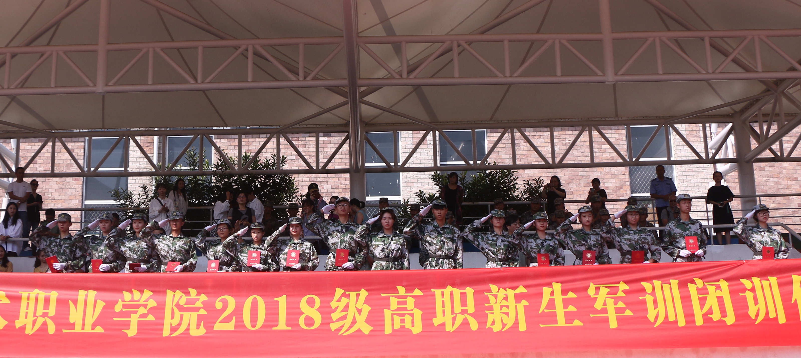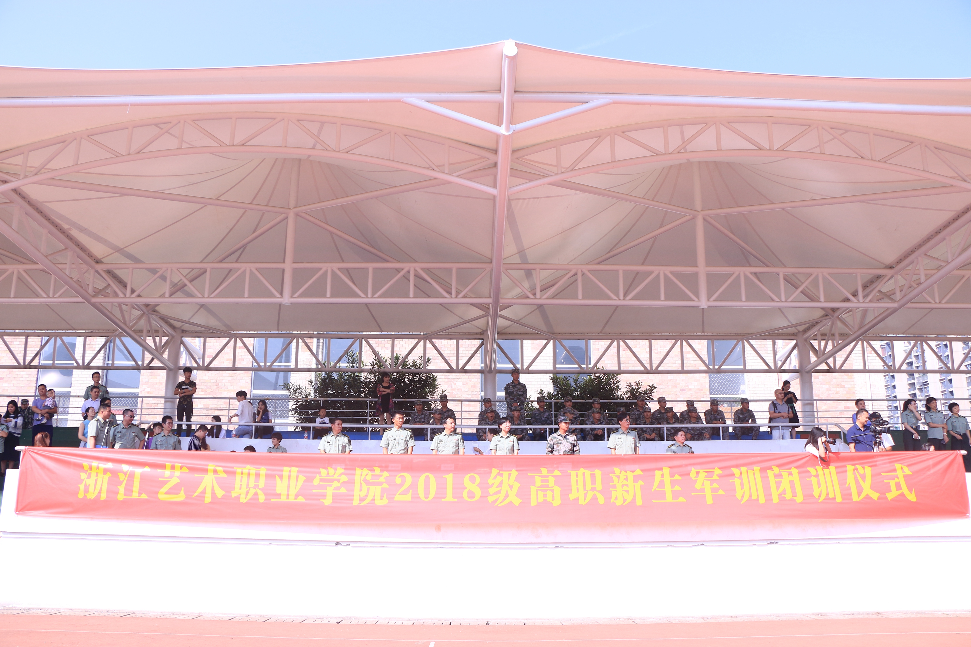 9月30日上午,浙江艺术职业学院2018级高职新生军训闭训仪式在田径运动场举行。初秋的阳光下,1100多名新生精神抖擞,用铿锵有力的声音和飒爽英武的军姿向主席台上的校系领导、班主任、辅导员老师们展示了为期14天的军训成果。校领导朱海闵、夏开堂、沈恒、沈军甫、王涛、马向东等出席仪式。