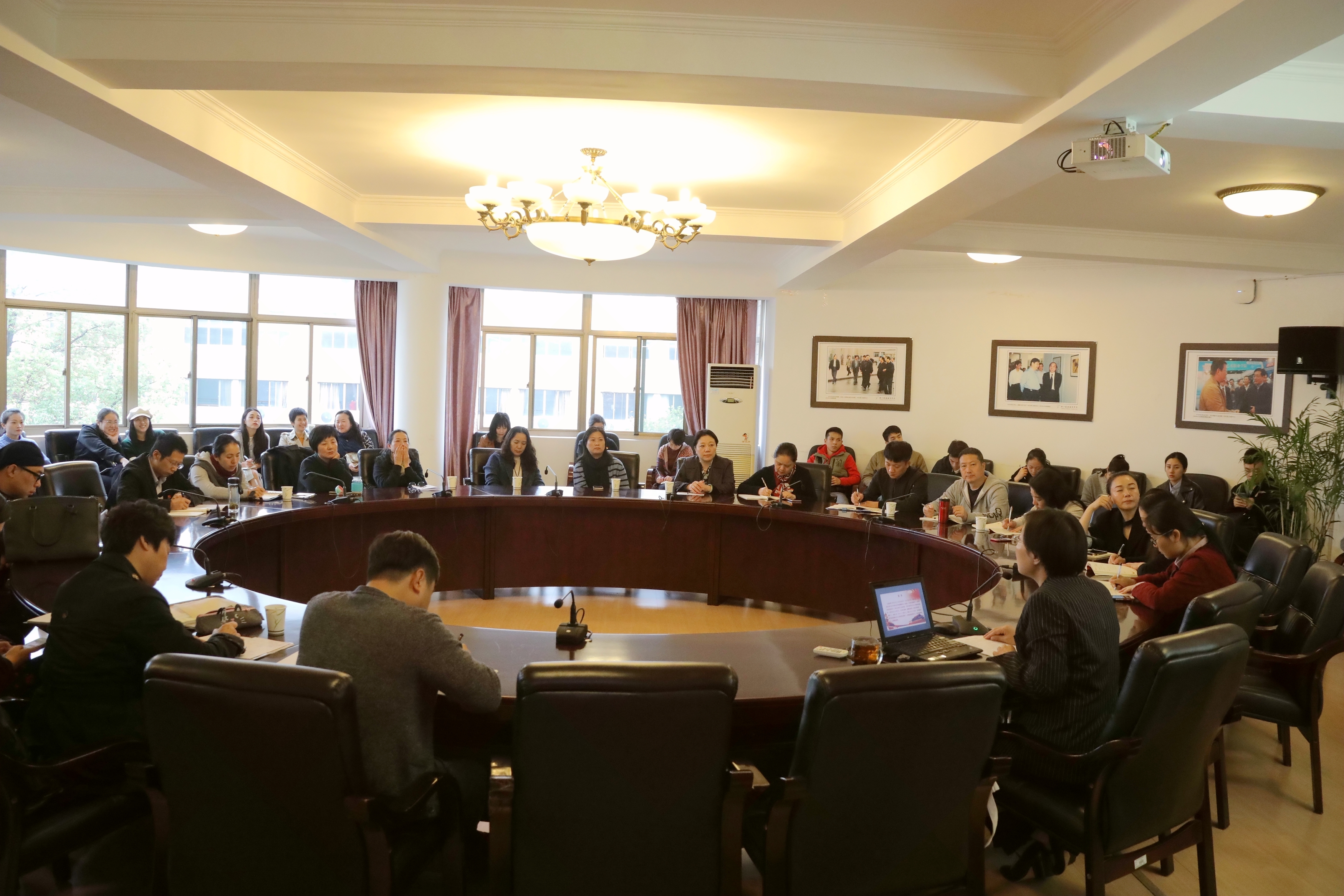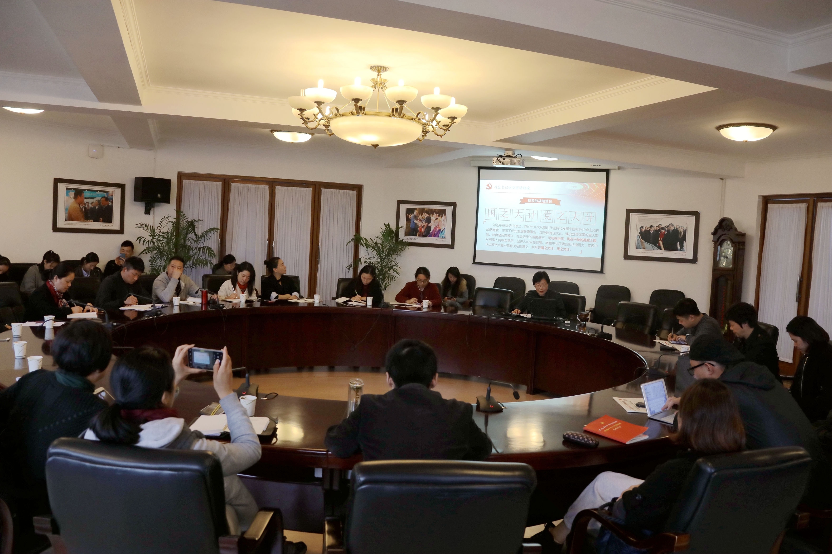 11月8日,浙江艺术职业学院全国教育大会精神宣讲对谈会在行政楼三楼会议室举行,浙艺宣讲团成员、校党委书记朱海闵作《坚持中国特色社会主义教育发展道路 书写新时代立德树人、推进教育现代化走在前列的浙江答卷》主题宣讲。戏剧系、校党政办全体教职员工及学生党员、入党积极分子代表参会,会议由戏剧系党总支专职副书记许瑛主持。