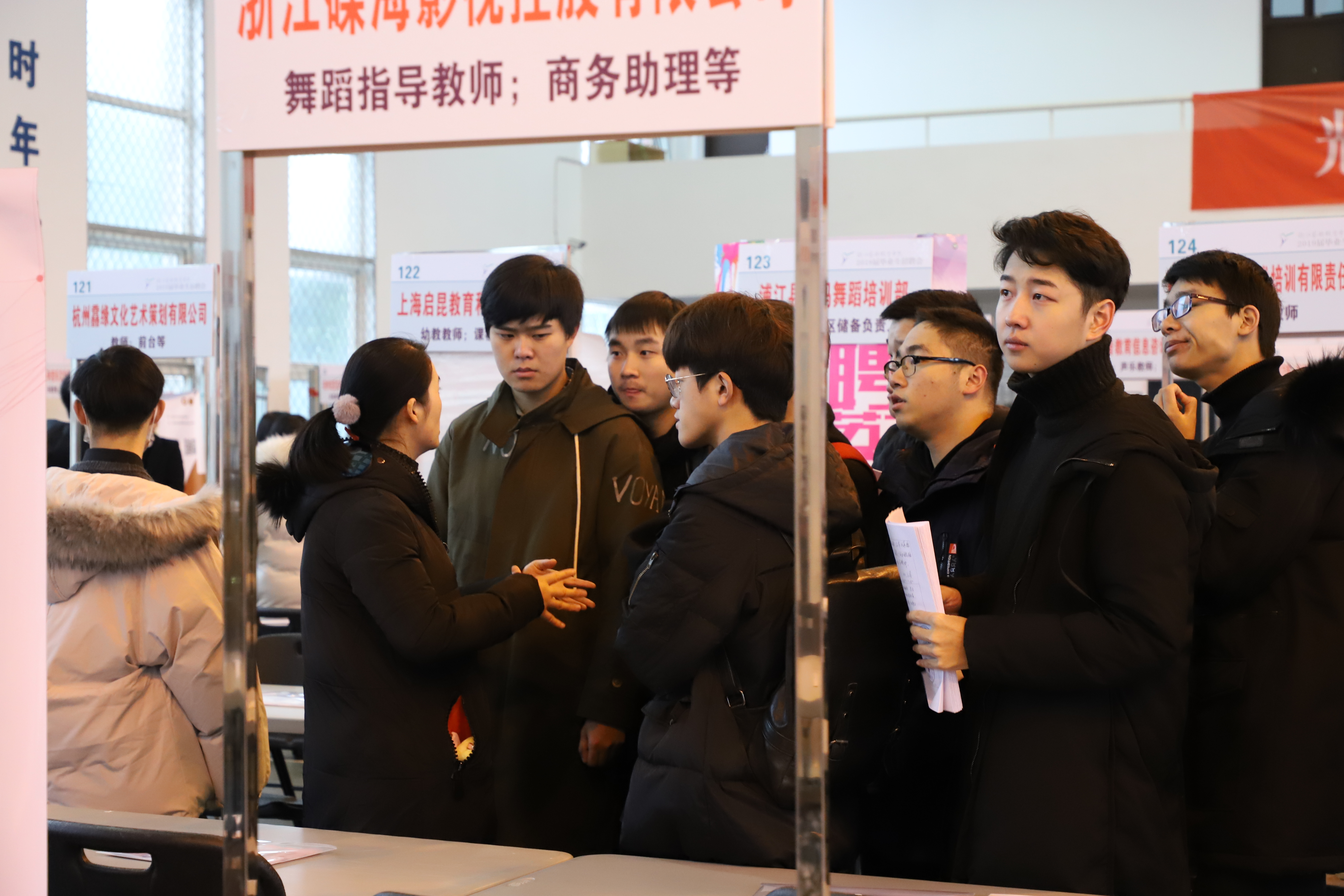12月14日,浙江艺术职业学院2019届毕业生招聘会在校体育馆举行。200家用人单位提供就业岗位2600多个。浙艺2019届共有专科(高职)毕业生875人,主要有戏曲表演、戏剧影视表演、表演艺术,音乐表演(声乐)、音乐表演(器乐)、歌舞表演、现代流行音乐、音乐制作,舞蹈表演、舞蹈编导(少儿舞蹈),舞台艺术设计与制作、广告设计与制作、服装与服饰设计、环境艺术设计(装饰艺术设计)、动画设计,影视多媒体技术、声像工程技术、音像技术、摄影摄像技术,展示艺术设计、文化创意与策划、公共文化服务与管理、文物修复与保护等23个专业及方向。