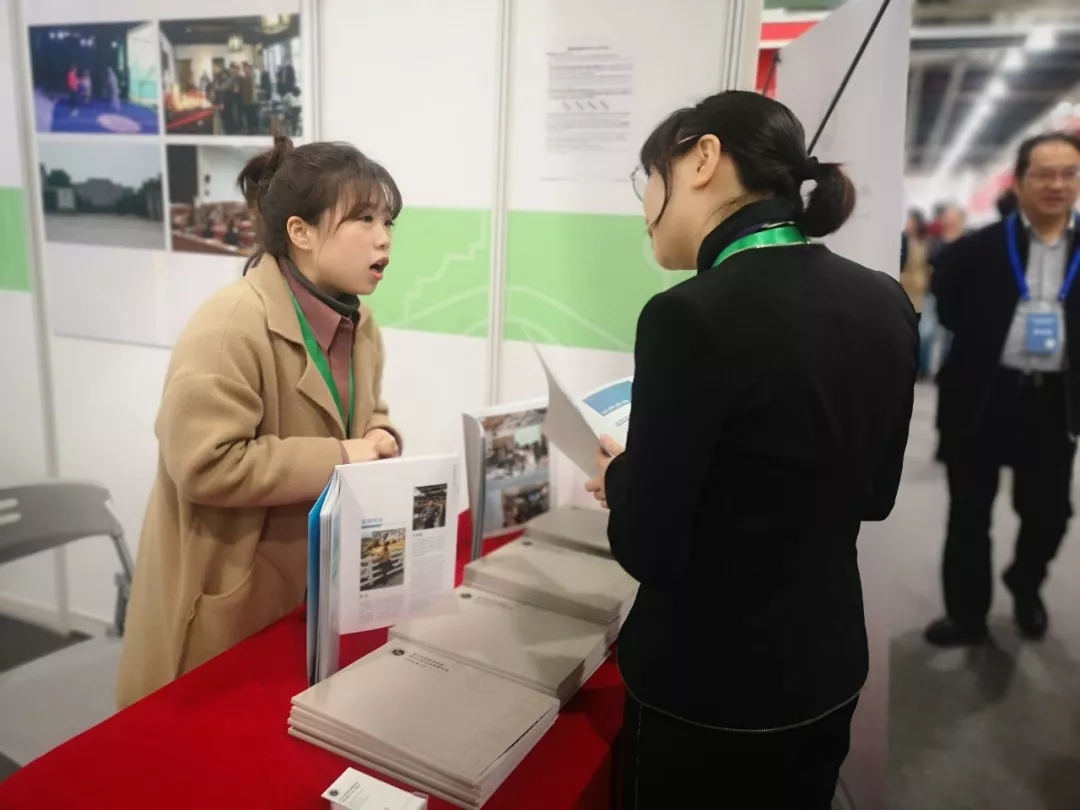 本次文采会展出持续到20日。仅19日,我校展厅就接待参访人员近2000人,发放资料400余份。