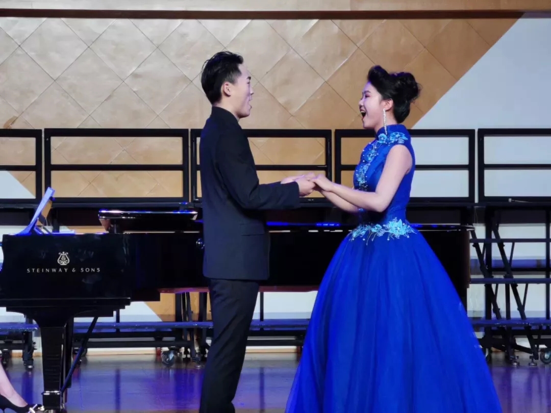 “溪水清清溪水长,溪水两岸好风光……”音乐会在《忆江南·新采茶》的旋律中开启。这首改编自家喻户晓的江浙民歌《采茶舞曲》的新版女声小组唱作品,10名女生演绎在我国民族民间音乐大家庭中,江浙一带的民歌以其清新委婉、活泼灵动的特质占有重要位置。音乐会上,江苏民歌《紫竹调》《四季相思》《拔根芦柴花》是耳熟能详的江南曲调,用女声重唱、独唱的形式展现出原样风貌。女声联唱《茉莉花》合着富有爵士乐韵味的钢琴伴奏,使这首地道的江南民歌有了现代新民歌的意味。用温州方言演唱的《对鸟》由刚刚获得2019全国职业院校技能大赛声乐赛项二等奖的张銮楠同学带来,这首在温州几乎人人会唱的地方民歌收获了现场观众的热情欢迎。创作于上世纪九十年代的《茶山情歌》最初由歌手杨钰莹用通俗唱法演绎,在这次音乐会上,4位女用载歌载舞的表演唱形式再度将这首江西民歌搬上了舞台,别有一番风味。用沪语演唱的上海民歌《啥鸟飞来节节高》,透过婉转的曲调,吴侬软语的江南韵味油然而生。