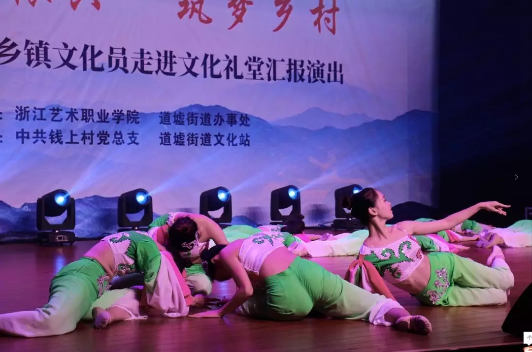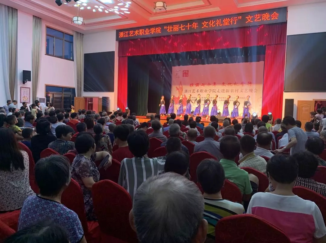 壮丽70年,文化礼堂行,这个夏天,还未放暑假,浙江艺术职业学院师生就厉兵秣马,为暑期赶赴浙江各地农村文化礼堂做准备,助力乡村文化振兴,献礼中华人民共和国成立70周年。7月7日,文化管理系17、18级定向培养乡镇文化员走进上虞道墟钱上村,进行综合汇报演出;7月11日,舞蹈系上演舞蹈专场。两场演出,演员青春,歌舞欢快,现场掌声阵阵、气氛热烈。