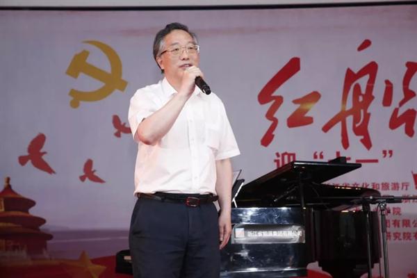 傅玮致辞。他说,今年是红船向未来——迎“七一”声乐专场音乐会主题党日活动持续推进的第三年。三年来,党员干部们用一首首红歌歌颂党、歌颂祖国、歌颂时代,回忆峥嵘岁月,再现红船启航的场景,展示面向未来的蓬勃激情和走在新时代中国特色社会主义道路上的铿锵步伐,激励我们不忘初心,牢记使命,继续前行。在浙江文旅融合的开局元年里,活动的举办使乐理交融,在歌声里重温党的光辉历程,致敬峥嵘岁月,憧憬美好未来。