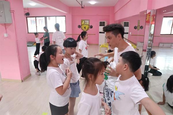 在松阳县玉岩实验教育集团,戏剧系教授孙丽萍带领支教小分队师生与该校“松阳高腔”社团的17名同学结成对子,进行为期5天的集中辅导。在下午的课程中,17名同学被分成花旦、小生两个小组,老师们耐心讲解每一个动作细节,同学们认真领悟每一个动作要领,反复练习,让在场的每一位都感受到了中华传统文化的魅力。
