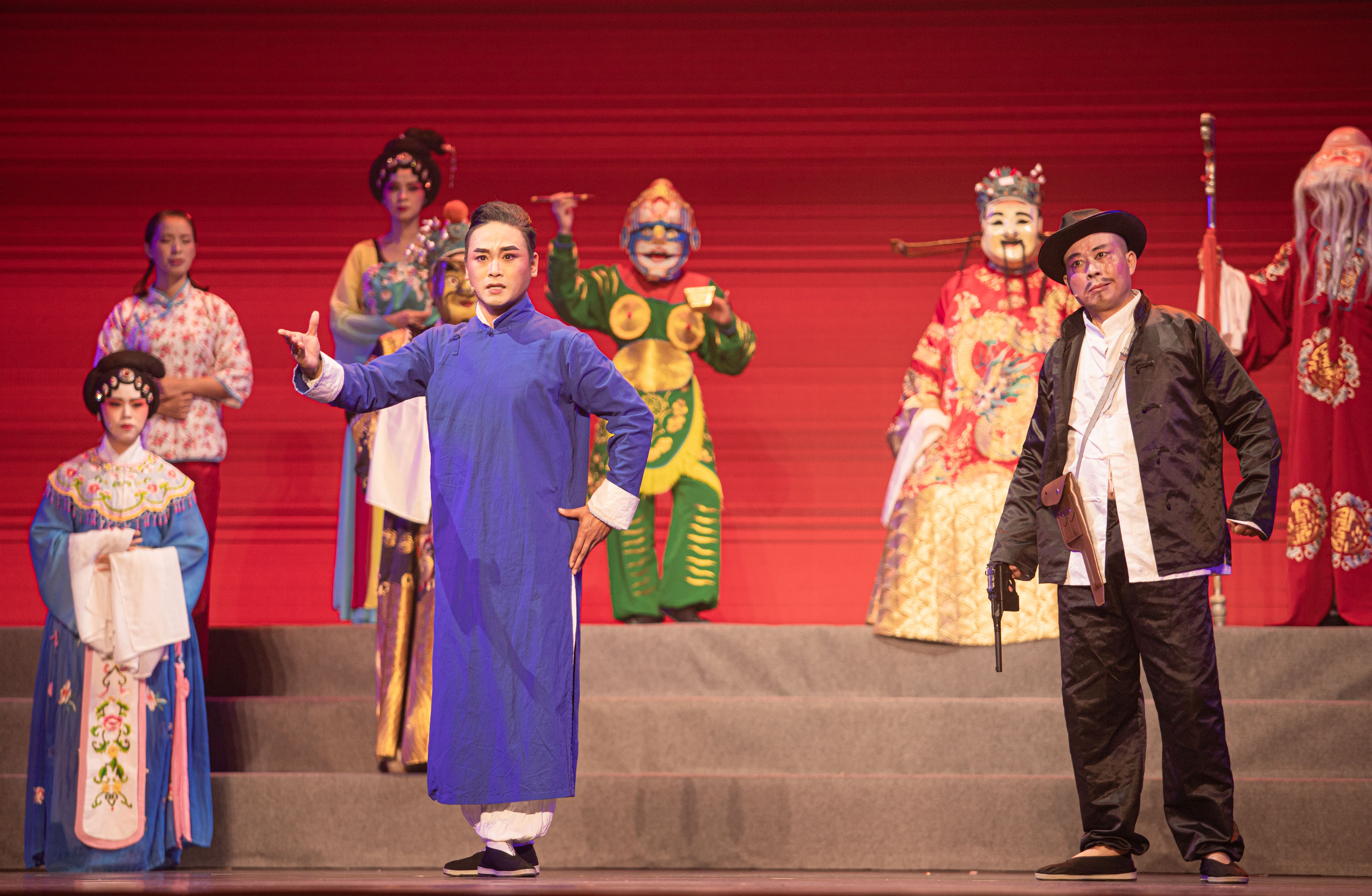 浙江省民营文艺表演团体之所以拥有广泛的观众群体,在很大程度上也源自其表演样式的丰富性,可谓“百艺荟萃”,蔚为大观。当晚的节目分为上篇“戏韵流芳”和下篇“百艺荟萃”,都是从刚刚在浙艺落下帷幕的2019年浙江省民营文艺表演团体展演活动中脱颖而出的优秀剧目。