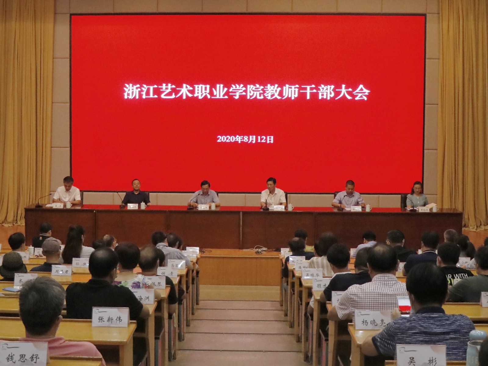 8月12日下午,浙江艺术职业学院召开教师干部大会,宣布省委关于学校主要领导调整的决定。省委宣传部常务副部长来颖杰出席会议并讲话,会议由省教育厅党委副书记干武东主持,省文化和旅游厅副厅长、党组成员刁玉泉出席会议,省委组织部干部三处处长徐青录宣读省委干部任免文件。