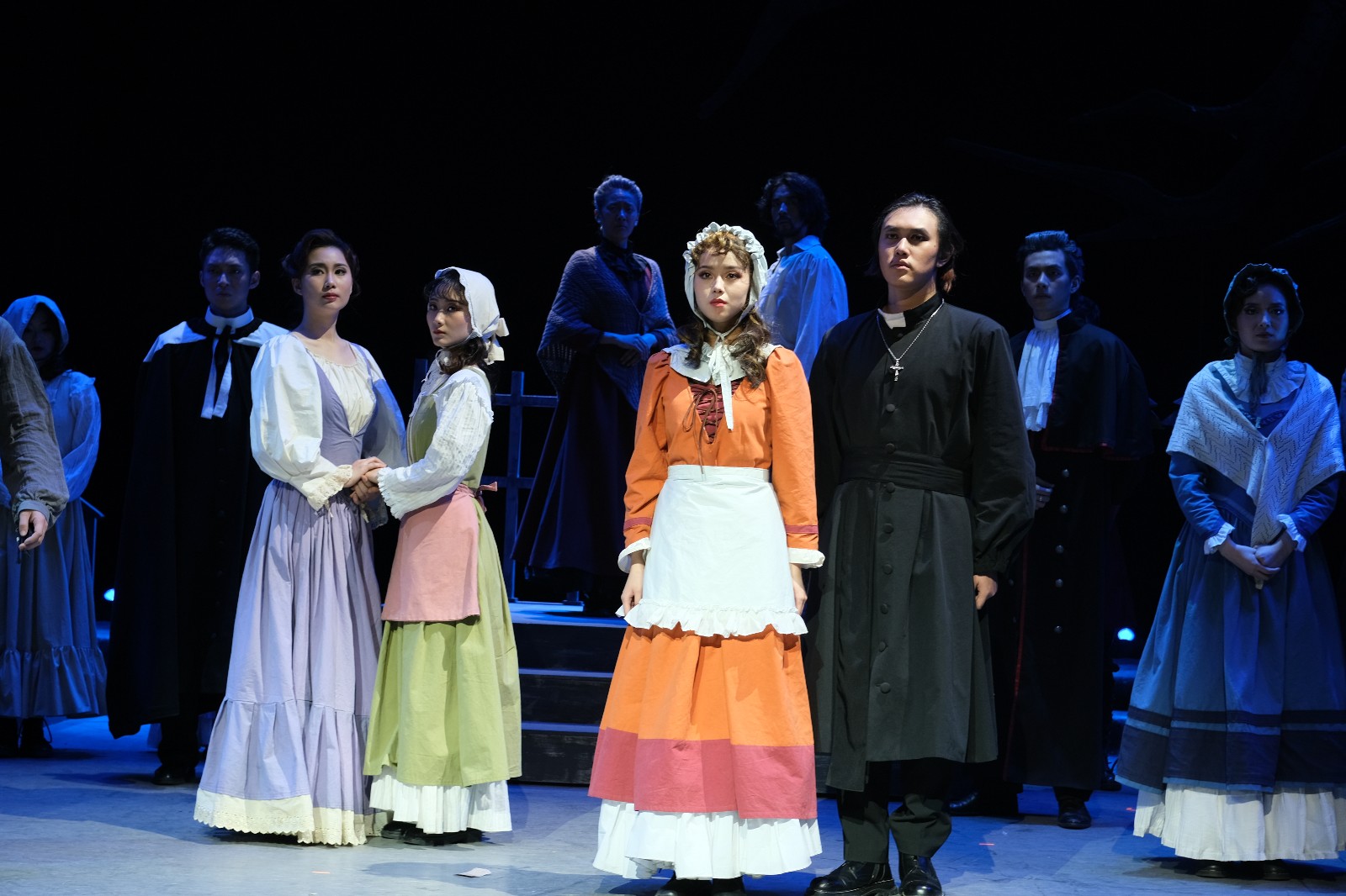 剧情的最后,缓缓出现的审讯台,沉静淡然的殉道者瑞贝卡女士和普罗克托代表高尚的灵魂,他们始终相信真正的正义和诚实。一幕一幕的场景变换以及场上演员的真情演出,带领观众感受着正义和邪恶的冲突,光明与黑暗的较量。就像剧中所说的那样:“我们将永远坚持正义,永远相信未来,就像相信绞刑架下有奋起反抗的伟大灵魂。”