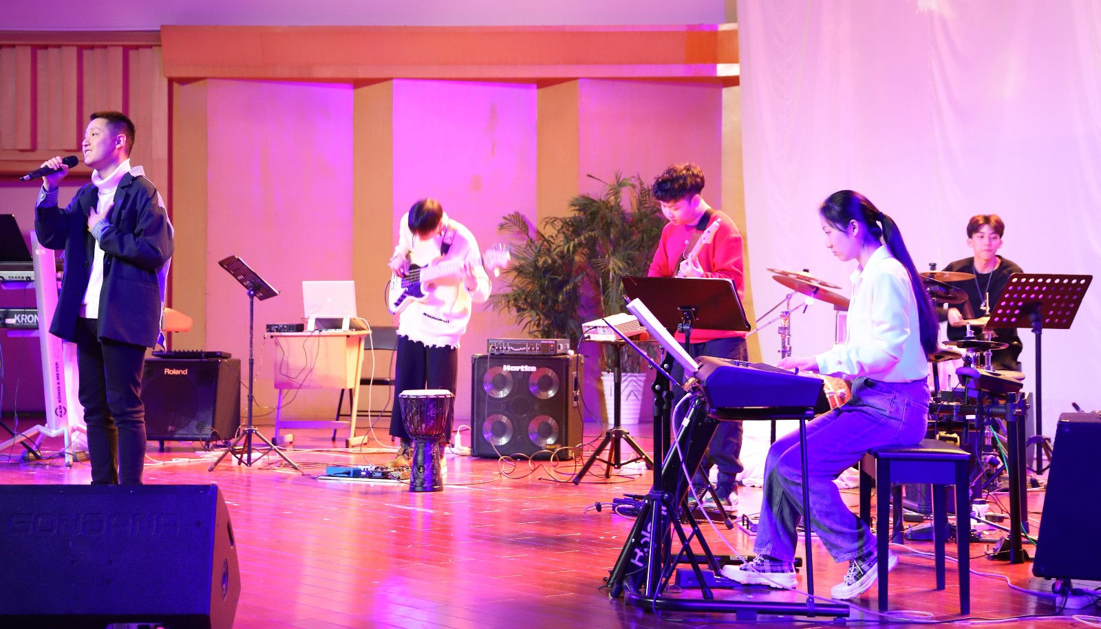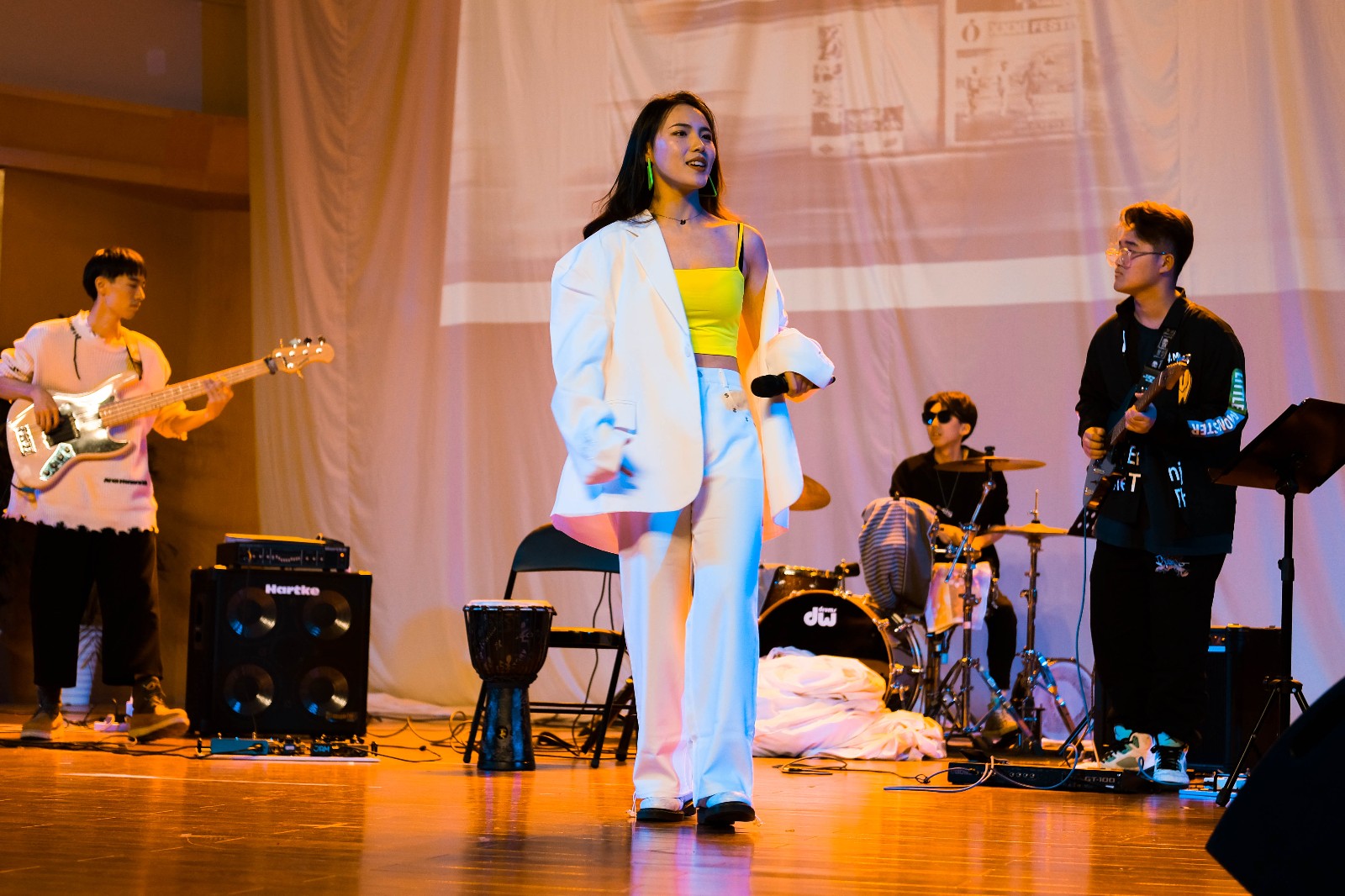 伴随着《Truth》《Tropical Jam》《Right By Your Side》《Fresh Ducks》《Kyiv》《绝招》数首小乐队重奏曲相继登场,现场气氛一浪高过一浪,爵士、融合爵士、摇滚等曲风将观众带去了五彩斑斓的乐音世界,展示了同学们一流的舞台表演技能。
