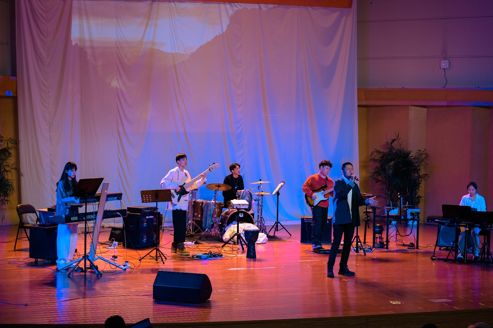 1130日晚,第十三届综合展演季流行音乐毕业专场音乐会在音乐厅举行。本次音乐会是音乐系18流行、16流行一贯两个班级的毕业汇报演出,为寒冷的初冬夜晚点燃了激情。