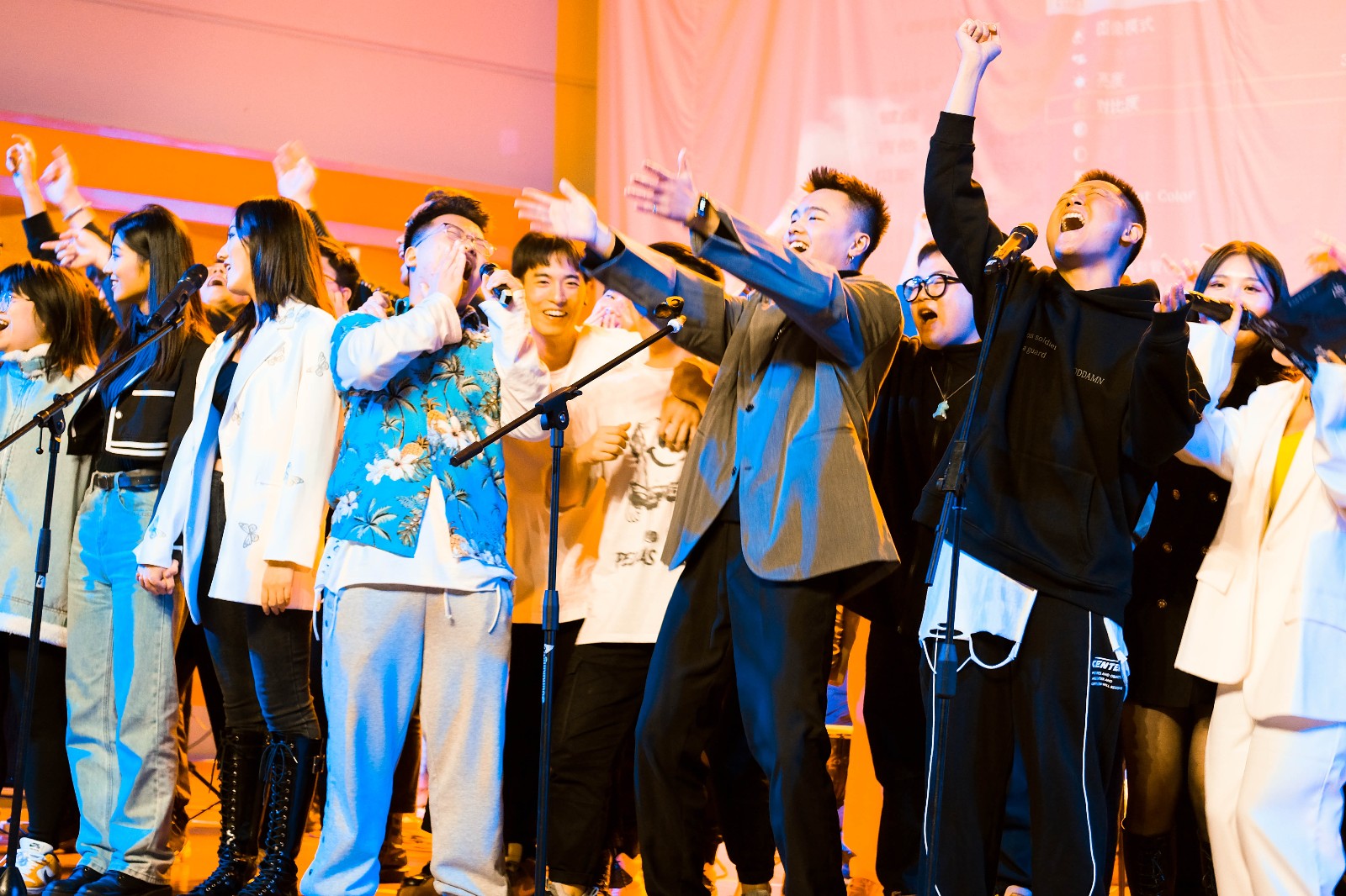 晚会即将结束之际,大屏幕上播放了音乐系领导、现代流行音乐教研室全体教师和辅导员老师们的毕业祝福。老师们以他们的方式表达了对18流行、16流行一贯两个毕业班同学的爱,同学们呼唤着曾经朝夕相处的的老师,感动落泪。