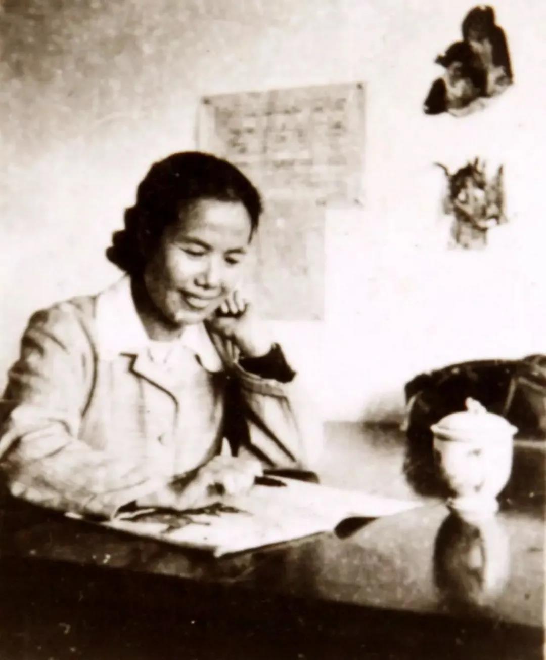 (1961年姚水娟在浙江艺术学校办公室留影)