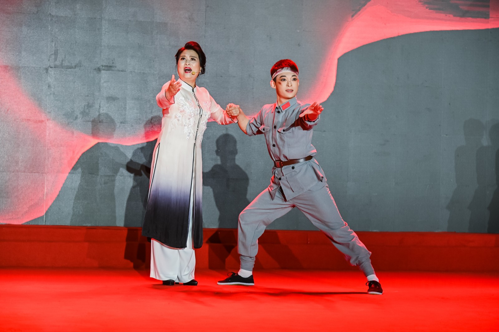 启动活动中,浙艺师生为现场观众奉献了一台精彩而又充满正能量的文艺演出。演出在浙艺同学们深情而激昂的合唱声中拉开帷幕,《妈妈教我一支歌》唱出了中华民族伟大复兴磅礴力量的来源,也唱出了新一代青年铭记中国共产党的丰功伟绩,和对不屈不挠的奋斗精神的深刻理解和传承。由浙江省朗诵协会会长刘忠虎和杨莅共同朗诵的诗词《红船,红船》,抑扬顿挫的深情朗诵读出了中国革命红船启航地浙江人的骄傲,小小的红船见证了开天辟地的大事变,中国共产党由此诞生,并开启了跨世纪的伟大航程。由浙艺戏曲学院副院长周伟君演唱的越剧新唱《七律·长征》则一改传统越剧温柔婉转的气质,唱出了中国共产党和中国工农红军克服艰难险阻到达陕北的战斗豪情。诗朗诵《卜算子·咏梅》《七律·人民解放军占领南京》,越剧新唱《为女民兵题照》,男女二重唱《不忘初心》等节目精彩呈现,表演者精神饱满,无论是朗诵、越剧还是歌唱,每一个节目都饱含深情,极富感染力,师生们用自己精深的艺术造诣讴歌了中国共产党成立百年来的伟大历程和不朽精神。演出结束后,瓶窑老街电影院、内十里渠水街和浙江艺术职业学院多地同时联动播放百场影展的开幕影片《建党伟业》,现场观众通过影片回顾了毛泽东、李大钊、陈独秀、周恩来等第一批中国共产党员在风雨飘摇的时代为国家赴汤蹈火的精彩故事。