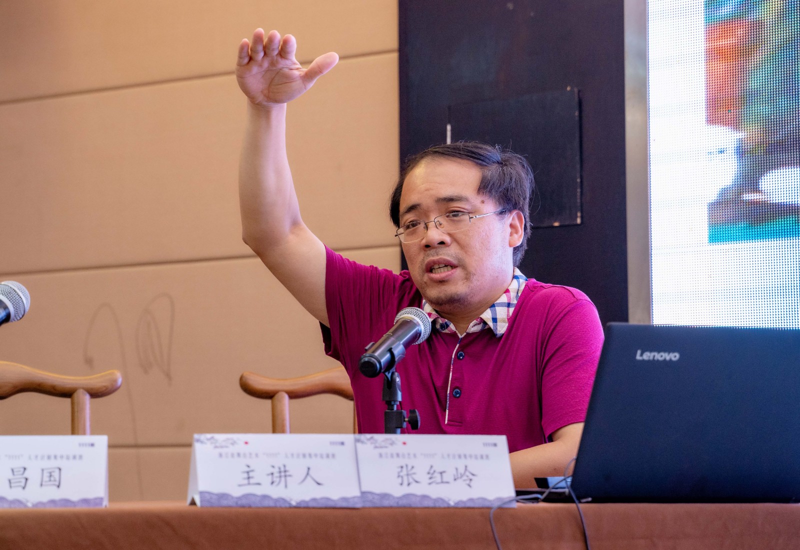 浙江艺术职业学院党委委员、副院长、“1111”人才计划专职班主任支涛代表承办单位浙江艺术职业学院(“1111”人才计划办公室)进行了《扎扎实实培养浙江舞台艺术领军人才》的工作汇报。