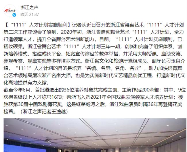 “运作有序 行动用力 落实有效”——浙江舞台艺术“1111”人才计划交出“期中”答卷