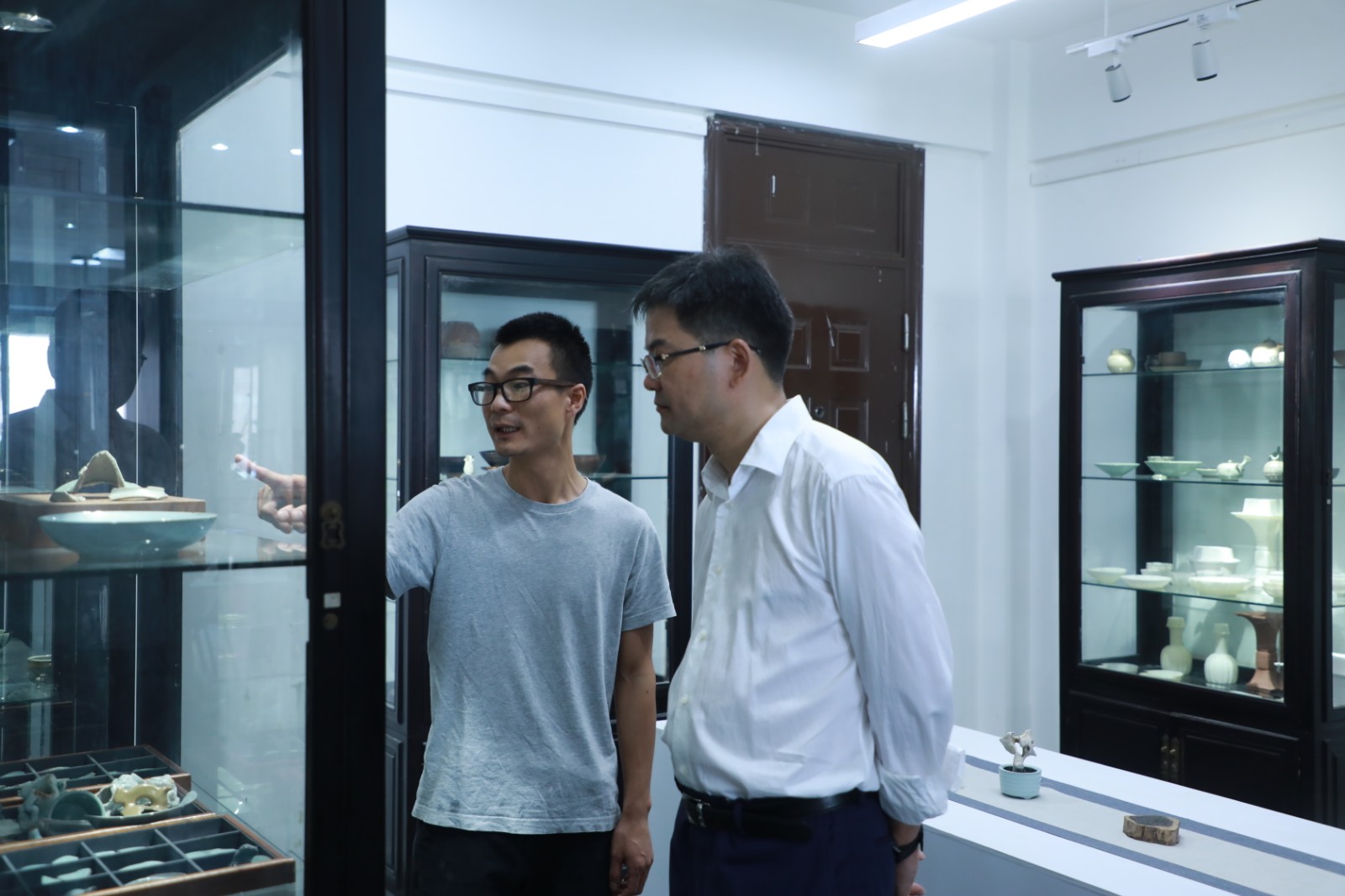 李志龙一行参观了国家“双高”专业群领衔专业戏曲表演专业教学场地、中央财政支持重点建设专业文物修复专业实训室等。在走访慰问中,李志龙向老师们送上了问候;在陶艺实训室,与我校文物修复与保护专业教师进行深入交流。他肯定了浙艺的教学水平和取得的教学成果,代表滨江区向我校全体教职工致以节日的问候,对学校的办学理念、人才培养、教育教学等方面给予了充分肯定。李志龙对学校为高新区(滨江)的发展建设所发挥的作用表示感谢,并希望学校能够继续发挥学科人才优势和社会服务功能,积极参与高新区(滨江)建设,推动全区教育事业发展再上新台阶。
