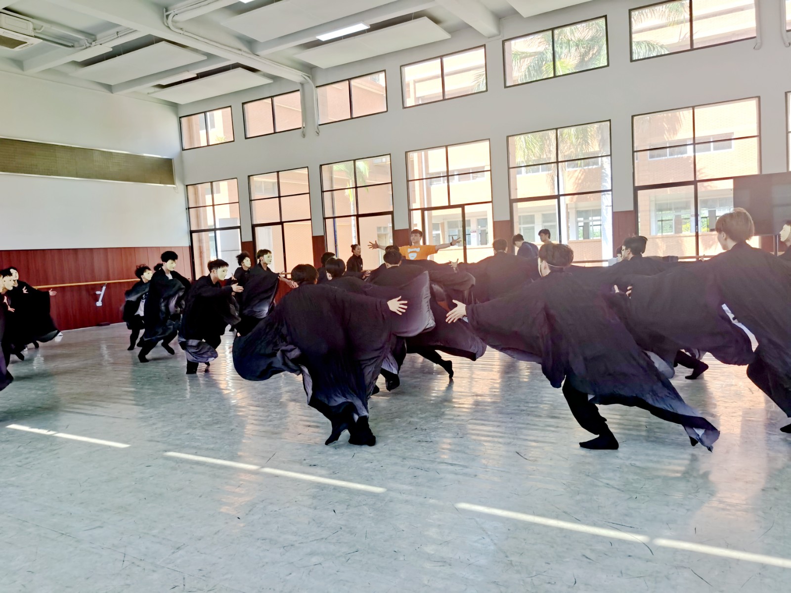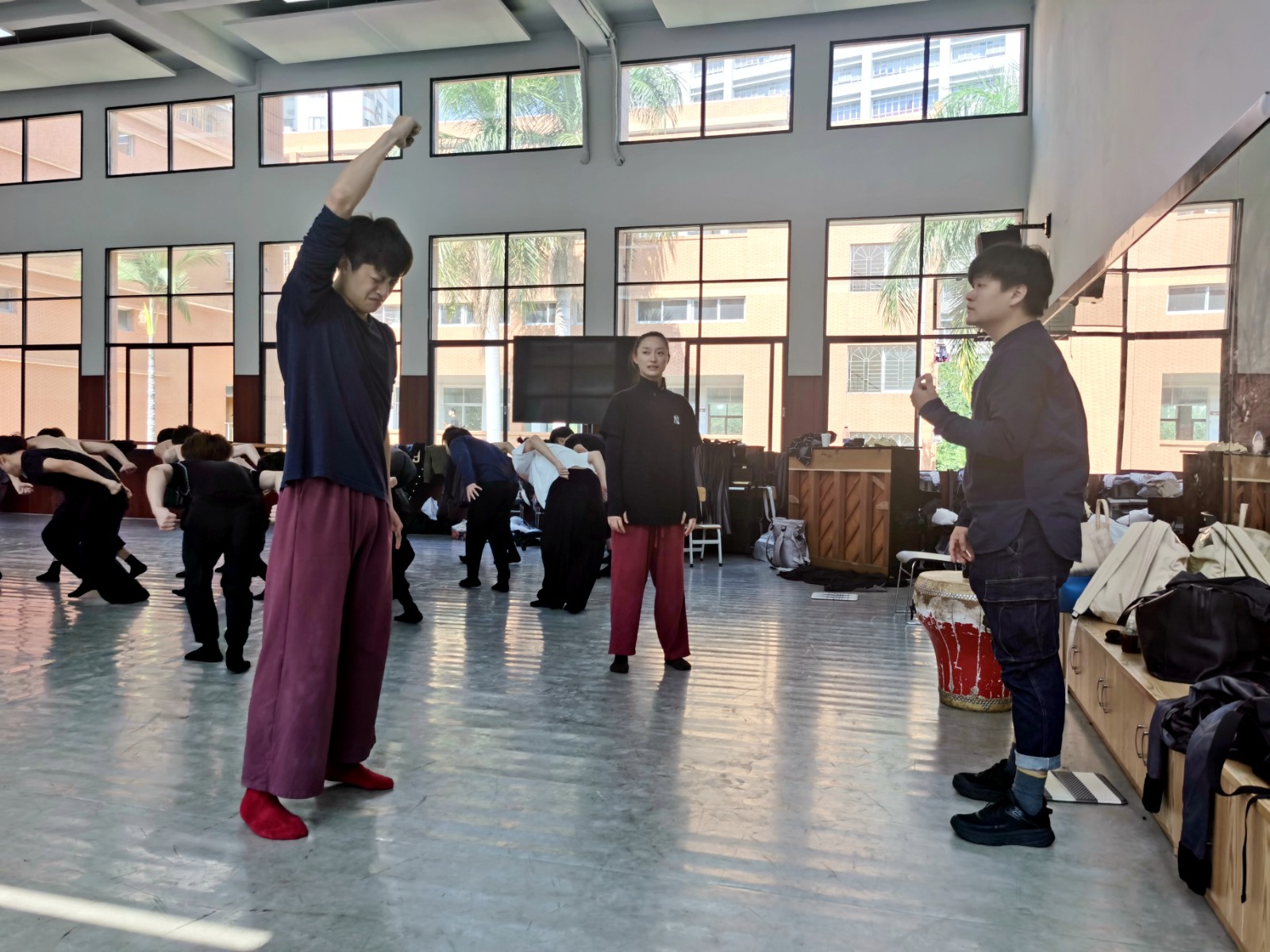 舞蹈系师生在广东舞蹈戏剧职业学院排练厅