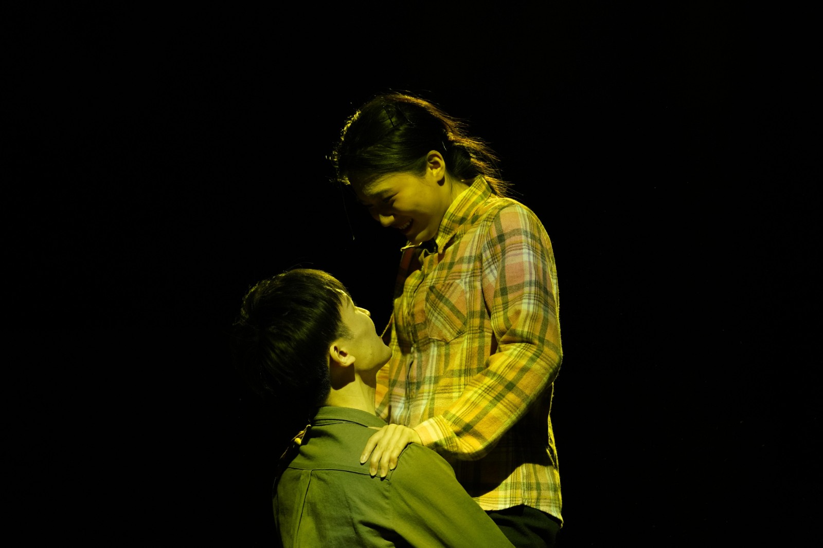 所谓沉浸式话剧,它打破了传统剧场固定的舞台和观众席位,从物理空间上打破了“第四堵墙”,随着现代戏剧不断对演员与观众交互性边界的试探和推动,“看戏”逐渐成了“体验戏剧”,这种戏剧从时间与空间上把人吸入其中,创造出类似真实世界的环境。陕北的信天游在黑匣子里唱响,故事就在这高亢嘹亮的歌声中缓缓拉开序幕,观众也仿佛置身于黄土地,感受那代人生活的起伏跌宕。这是对黄土地上艰辛生活的写照,也展现着苦难碾压下倔强生长的爱情和理想。
