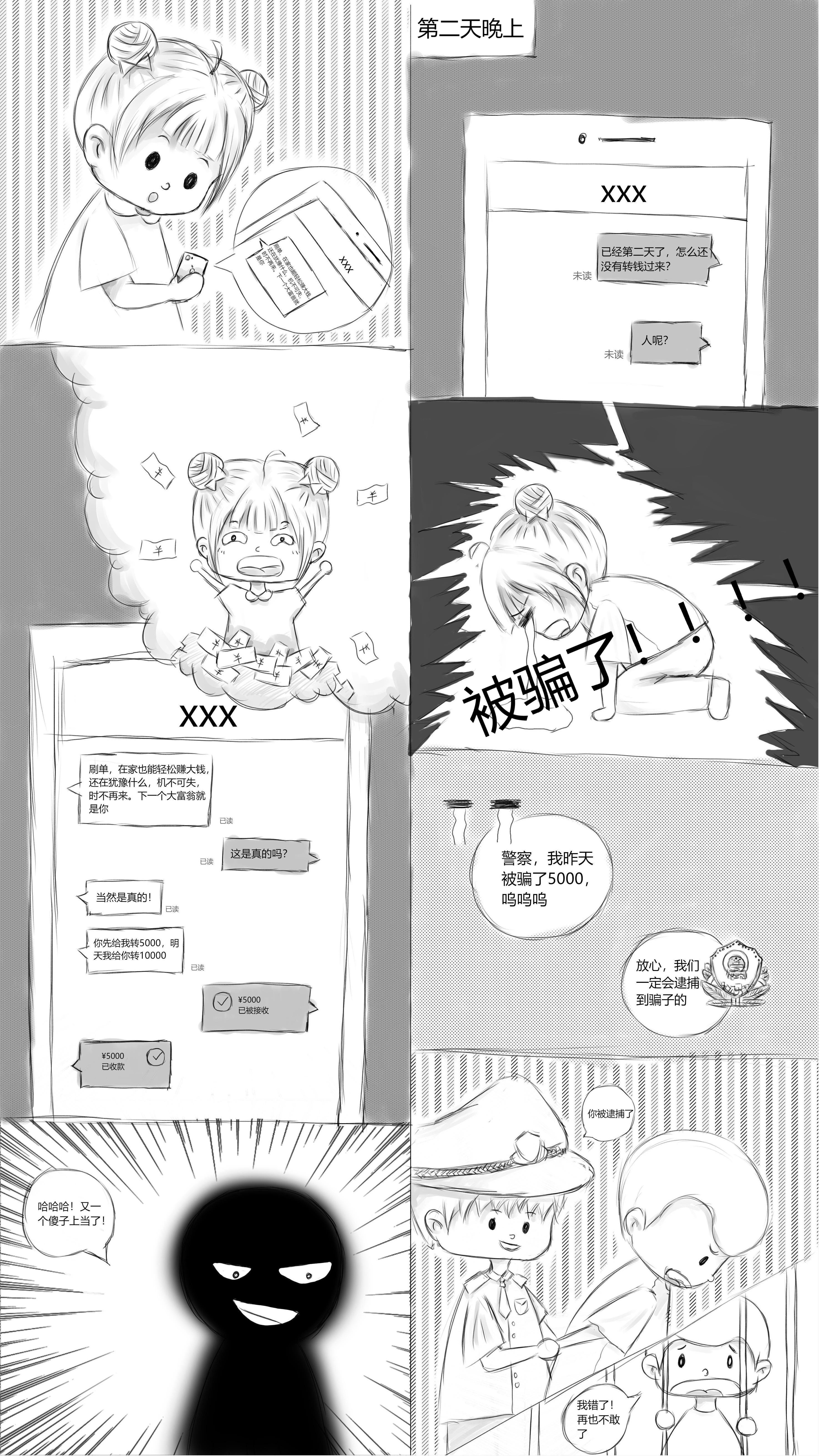 美术系学生发挥专业优势,以通俗易懂、幽默诙谐的漫画艺术形式对当前普遍出现的电信网络诈骗手段、作案方式及识别技巧等进行了解读和宣传,是一场生动的校园安全宣传教育。