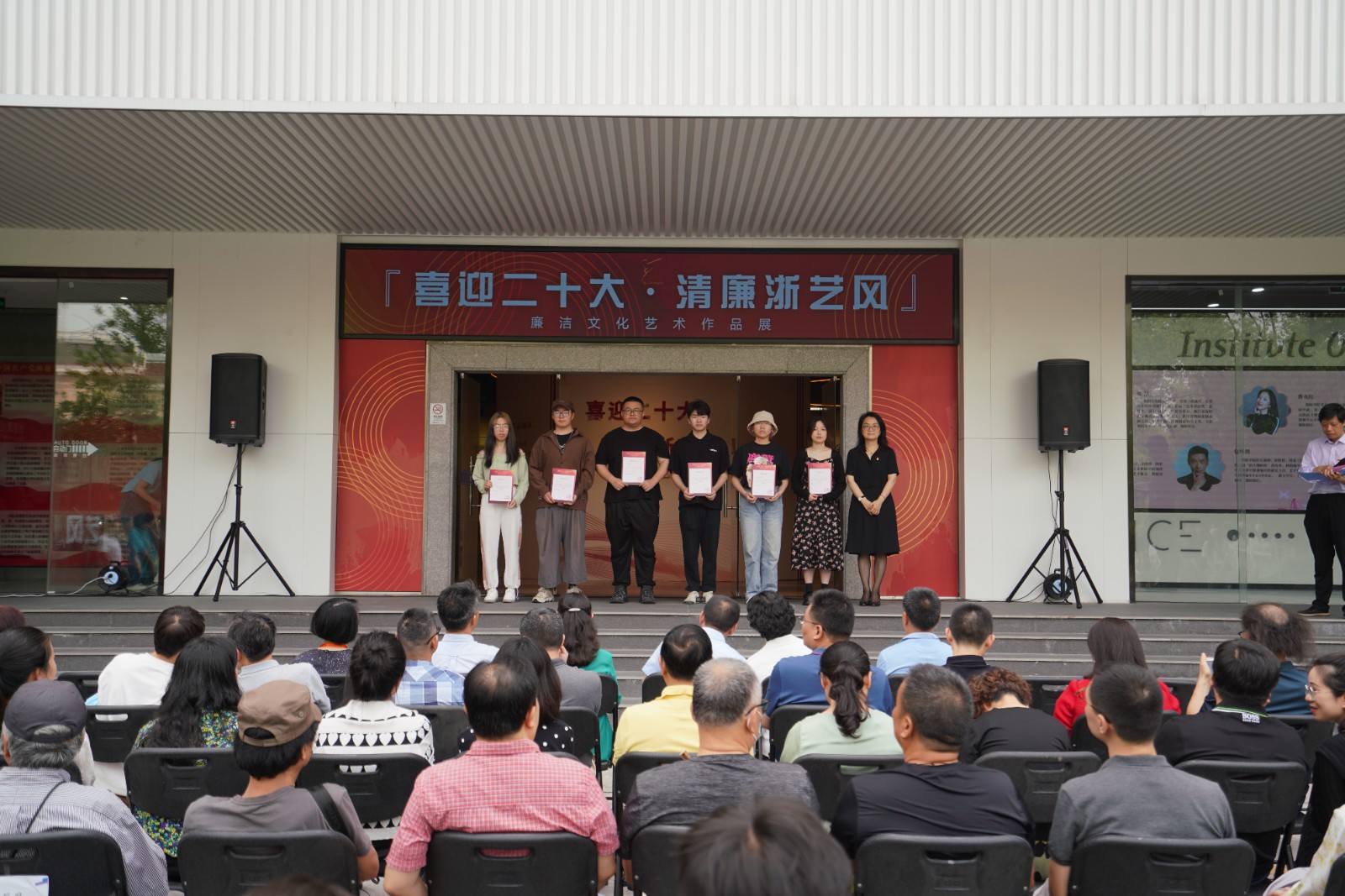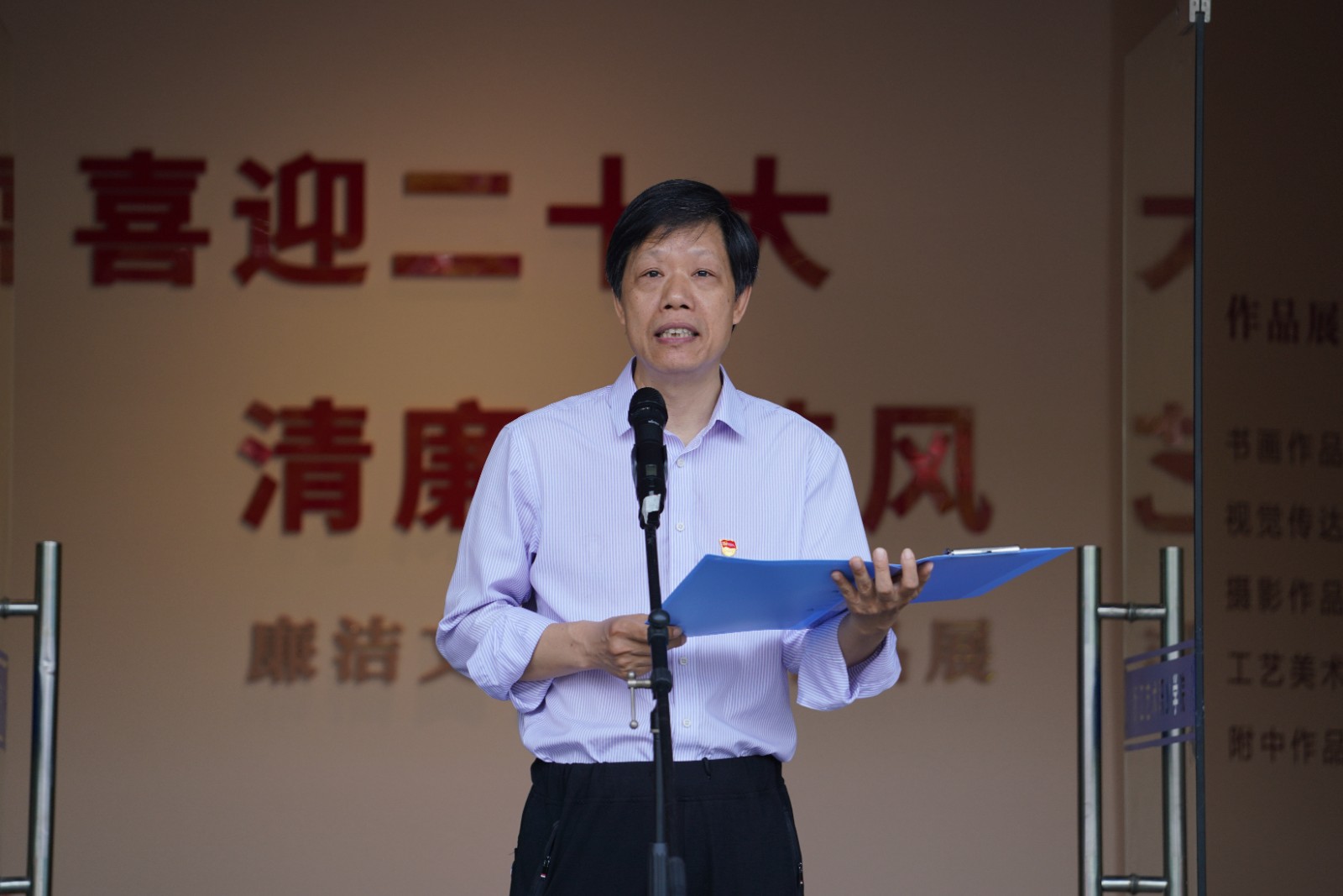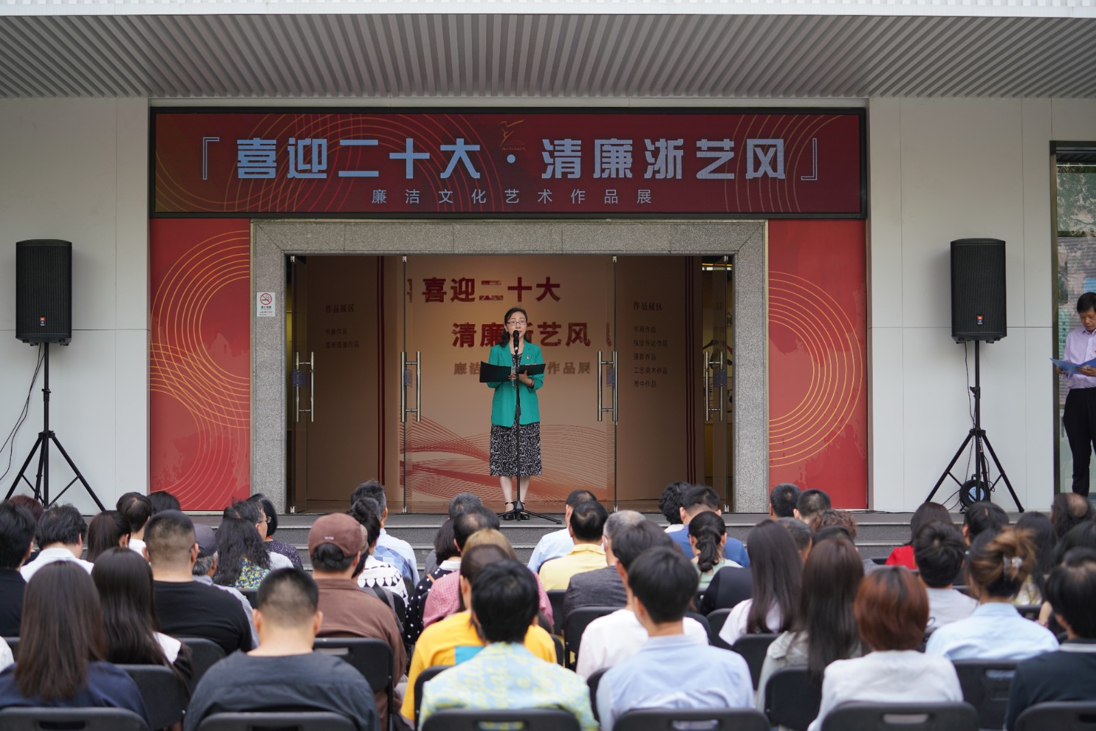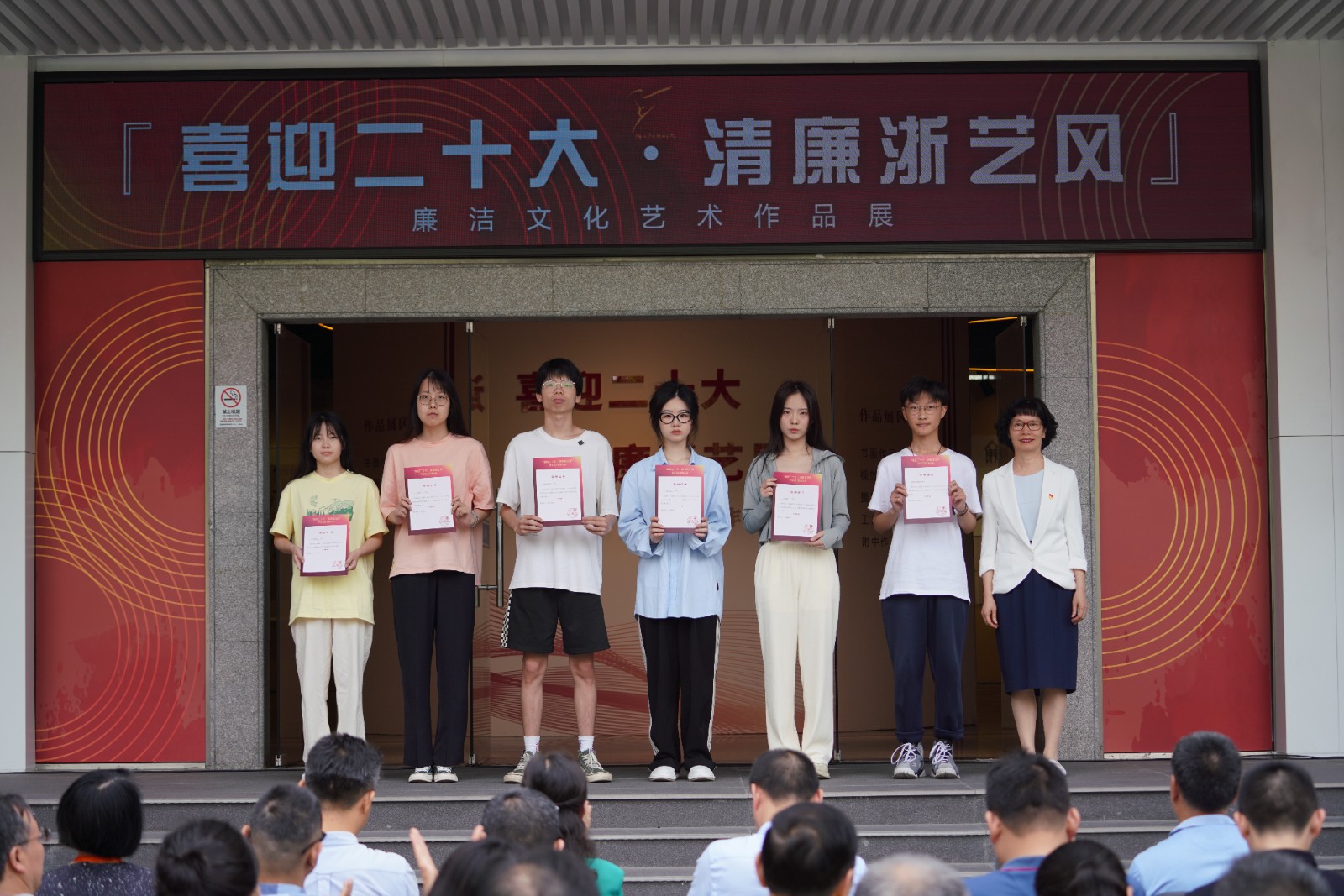6月8日上午,浙江艺术职业学院“喜迎二十大·清廉浙艺风”廉洁文化艺术展在学校四号楼1楼展厅开幕。驻省委宣传部纪检监察组副组长叶向阳,省文化和旅游厅直属机关纪委书记许林军,省文化和旅游厅宣传工作领导小组副组长、一级调研员杜毓英,浙江艺术职业学院院长黄杭娟,副院长沈军甫、支涛,校党委委员、组织部部长刘杨,各二级部门负责人和师生代表参加。开幕式由校党委委员、纪委书记徐芳主持。