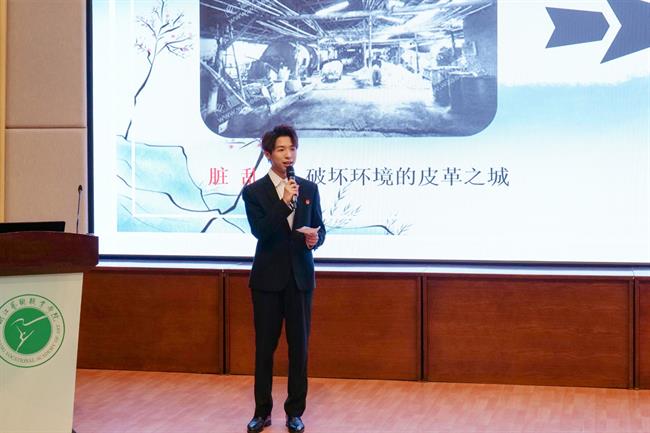 “习近平总书记强调‘环境就是民生,青山就是美丽,蓝天也是幸福。’让我们坚持‘人与自然生命共同体’理念,让美丽与富裕同行,让绿色成为共同富裕的靓丽底色。”马克思主义学院直属党支部教师宣讲员王儿从杭州西溪国家湿地公园发展入手,讲述人与自然和谐共生,呼吁大家做生态文明建设的践行者、推动者。