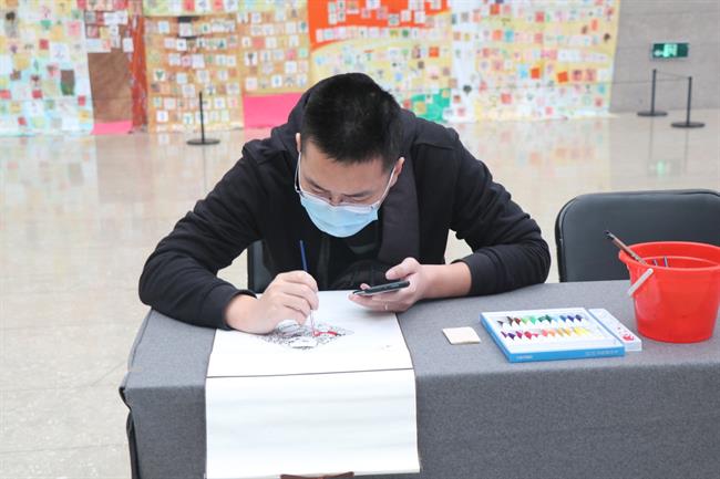 本次活动中,手工艺学院民族传统技艺专业教师高迅为观众揭开了水印木刻的神秘面纱,现场示范了印刷、手工上色等一系列制作流程。将年历对好位置,用镇尺压牢固。掀开年历,用毛笔蘸取黑色水墨涂抹在已刻好的木板上,再用圆刷刷匀版面上的水墨。覆上年历,用马莲在年历的背面施力印刷,在确保所有的图形印刷到位后揭开。现场观众看得全神贯注,颇有兴趣。