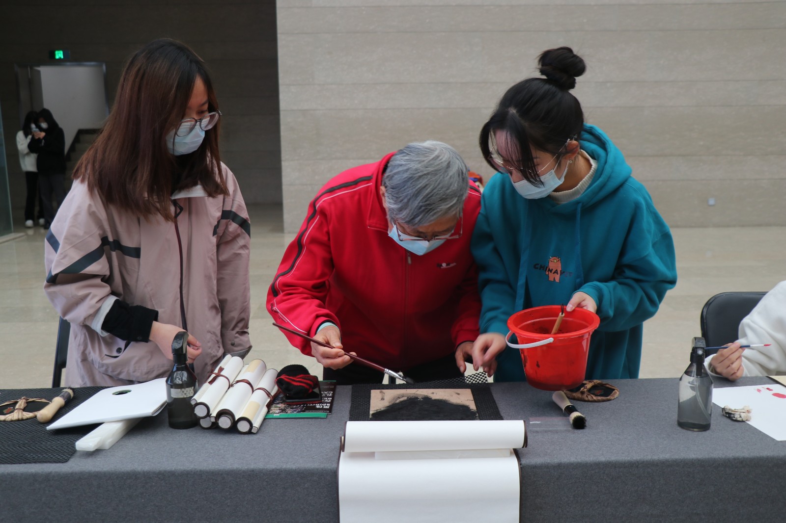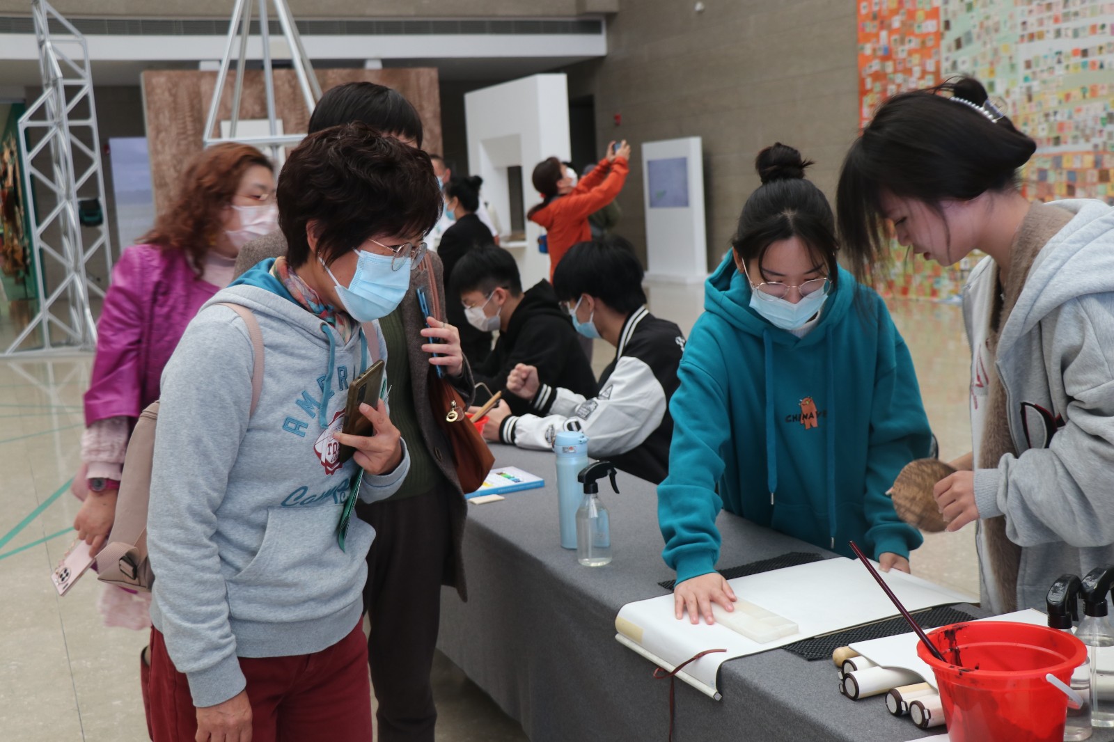 体验者们积极踊跃、依次有序体验做水印木刻,手工艺学院师生一对一、手把手指导。体验者们用心、大胆地创作,运用了更多色调让画面更厚实,让空白的宣纸变化出精彩的视觉效果。最终的成品画面丰富,独具韵味。富有趣味的体验活动,让体验者们久久不肯离去。