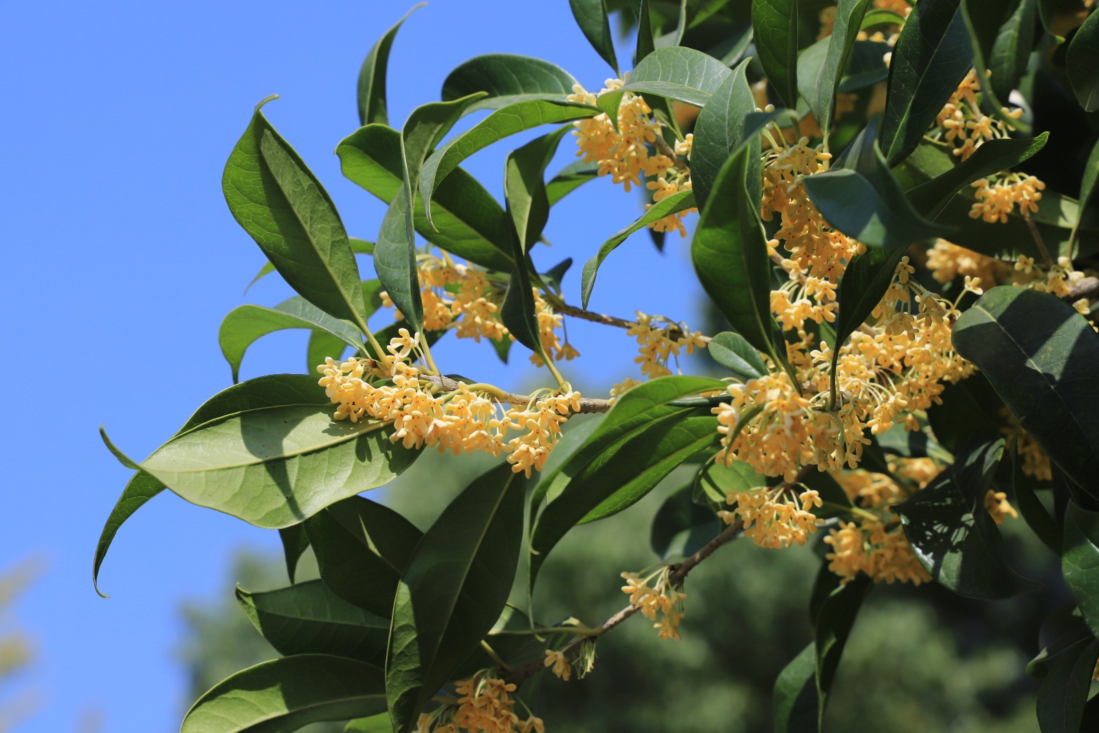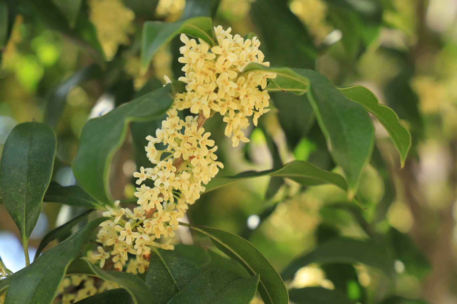 绿叶中缀着几丛碎金