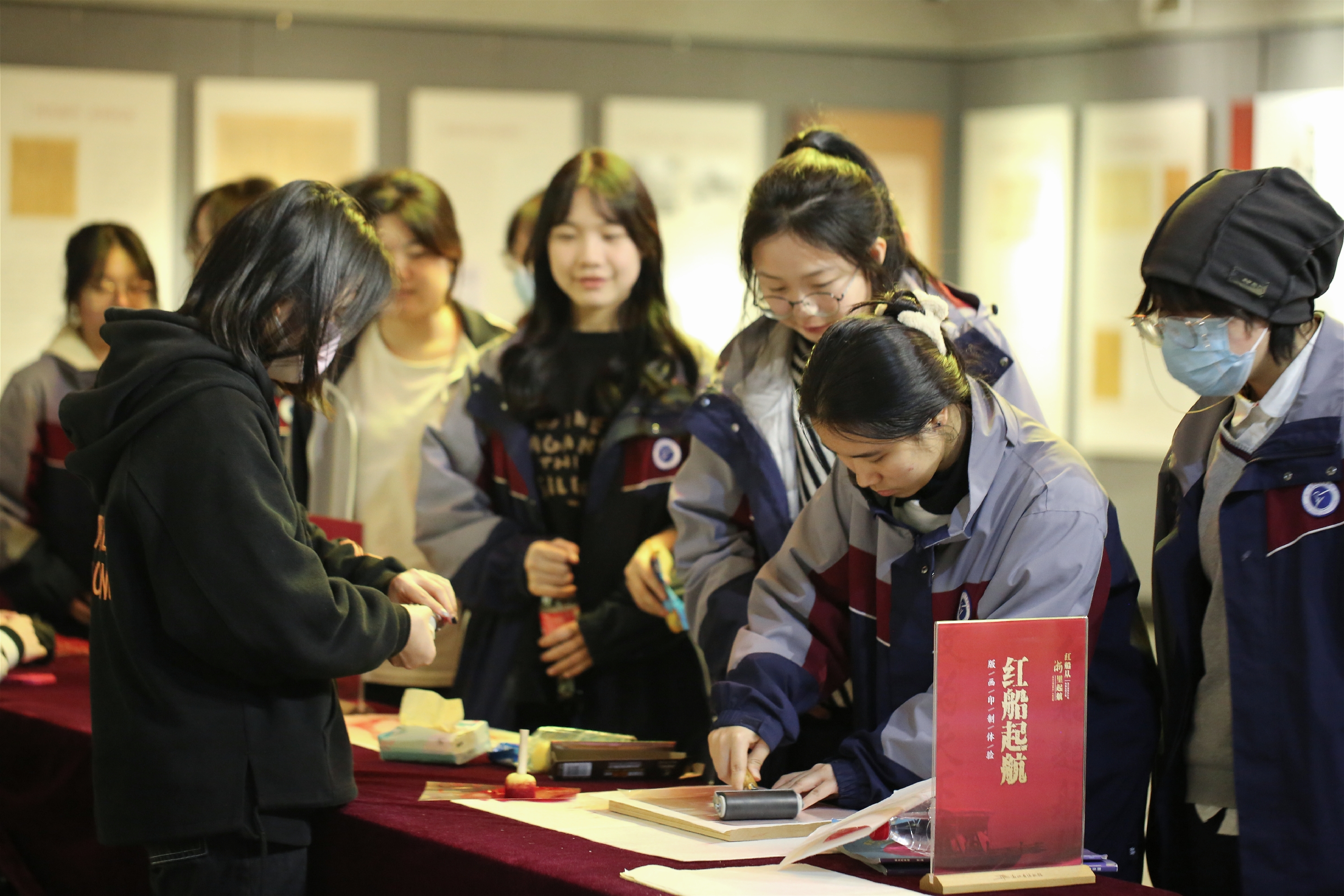 展览中还开设了红色文创专区,以供广大师生创作印章、书签,拓印版画等,通过艺术创作,凝聚起永远跟党走、奋进新征程的豪情壮志。
