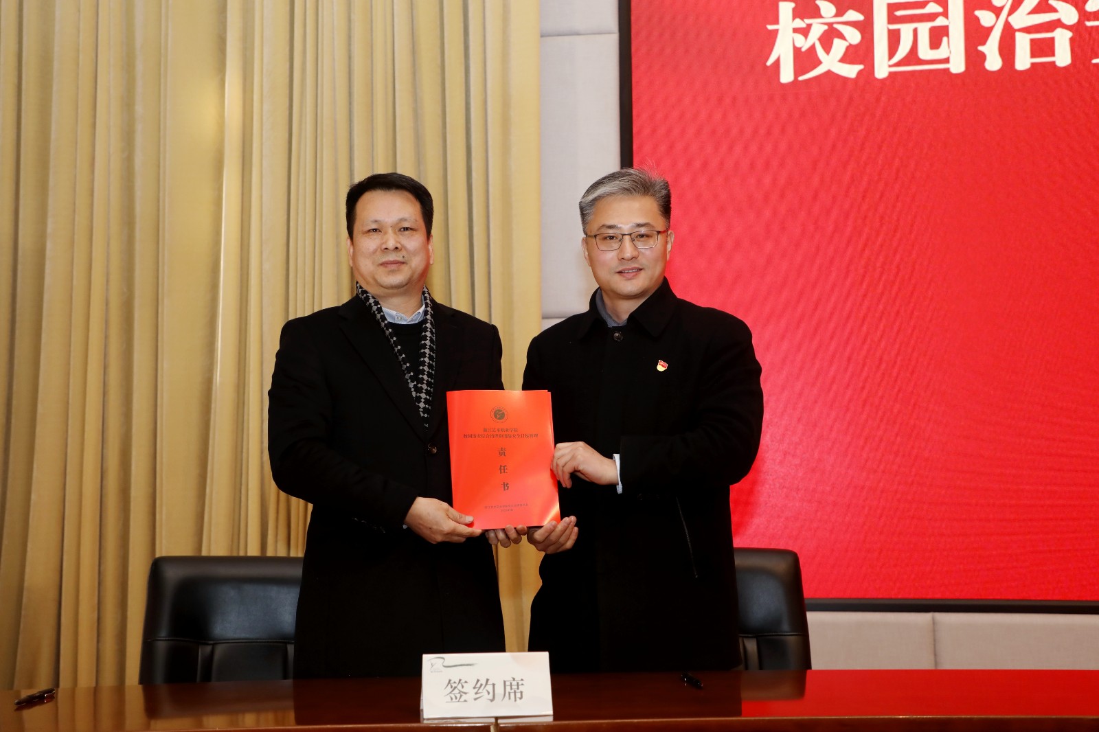 会上签订了2023年度学校党风廉政建设、意识形态工作、校园治安综合治理和消防安全目标管理三项重点工作责任书,与会人员还观看了师德师风警示教育片。