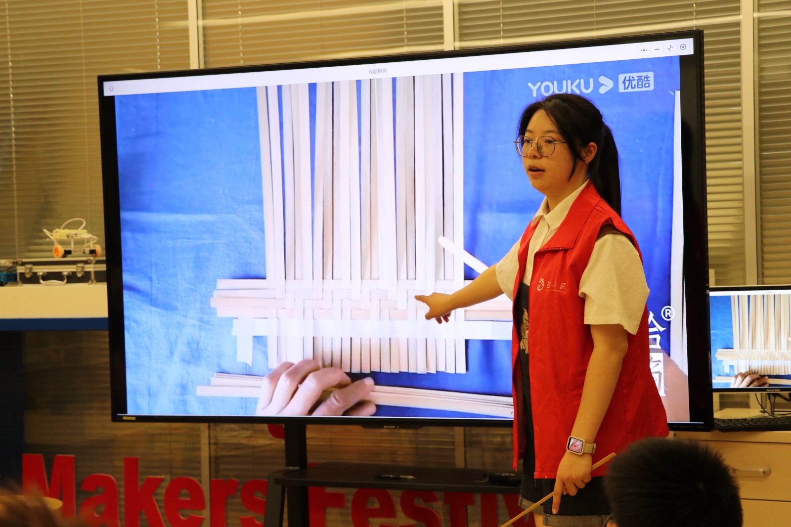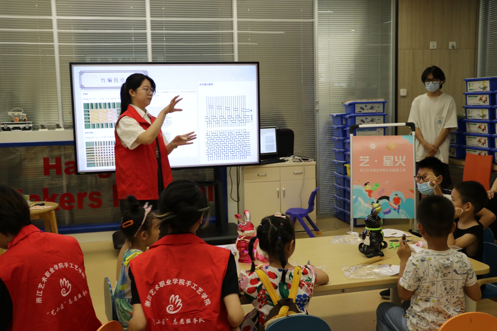 活动伊始,手工艺学院志愿者“艺小匠”将竹编的历史渊源娓娓道来,巧妙引导小朋友详细了解竹编的发展历程、传承意义及竹编工艺品种类,引领小朋友们穿越时间长河,感受作为国家级非物质文化遗产的竹编技艺所蕴含的东方智慧和独具匠心的巧思妙想。